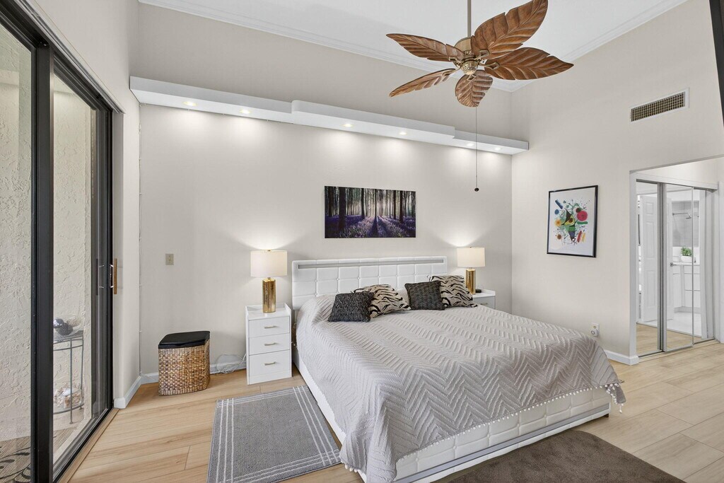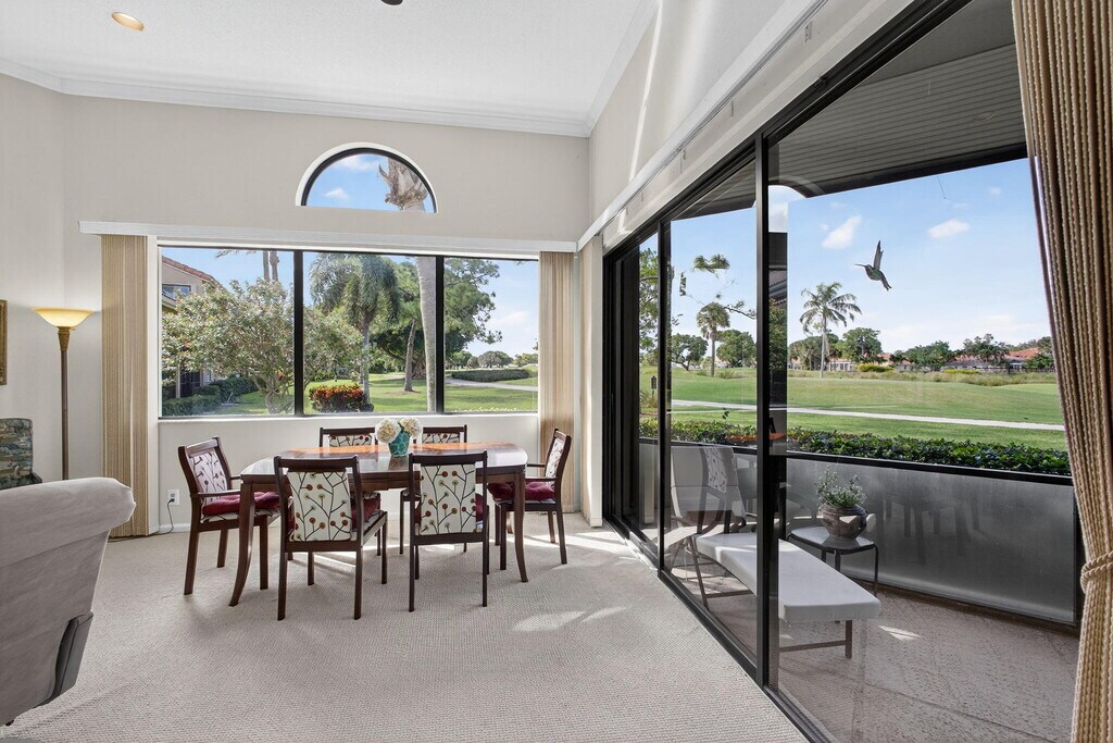 This one-story 2/2 unit also has a large den with a sleeper couch easily converts to a 3rd bedroom. located in the highly sought after private quite neighborhood of Windermere, PGA National Resort. Features vaulted ceilings, open living, new designer kitchen and bath, meticulously maintained. Light and bright fantastic panoramic views of the PGA General golf course, with a screened covered patio providing additional outdoor dining space. Large community pool with expansive covered sitting dining area a short walk away. Close to PBI International airport, restaurant's, shopping, beaches, and cultural events. A perfect winter seasonal retreat, this is a must see.