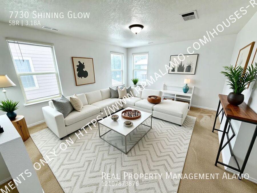 **MOVE IN SPECIAL, 50% OFF FIRST FULL MONTHS RENT** A stunning two-story home located in the vibrant city of San Antonio. This spacious property offers a comfortable and convenient living experience! Step inside and be greeted by an inviting interior. The open kitchen features a breakfast bar, great for casual dining and entertaining guests. Essential appliances such as a refrigerator, stove/oven, microwave, and dishwasher are included, making meal preparation a breeze. The five bedrooms provide plenty of space for everyone in the household, while the 3.5 bathrooms ensures convenience! The primary suite boasts a walk-in closet and a double vanity, adding a touch of luxury to your daily routine. Stay comfortable year-round with central air/heating and ceiling fans throughout the home. The washer/dryer connections offer convenience for laundry needs. Enjoy the privacy of a fenced backyard, great for outdoor activities and relaxation. The two-car garage provides ample parking and storage space. Conveniently located near I-10, this home offers easy access to major transportation routes, ensuring a seamless commute. Additionally, it is in close proximity to Randolph AFB! Don't miss the opportunity to make 7730 Shining Glow your new rental! For more information, e-mail us at Thank you! Schedule a showing TODAY!: Apply here: RPM Alamo is proud to offer deposit-free living to qualified renters through Obligo! We understand that moving costs can add up, so we want to extend financial flexibility to our residents. When you move in with us, you can skip paying a security deposit and keep the cash for activities you care about. Learn more about the benefits of deposit-free living with Obligo’s brochure or on their website. All Real Property Management Alamo residents are enrolled in the Resident Benefits Package of their choice Tier 1 $55 or Tier 2 $70 monthly which includes HVAC air filter delivery (for applicable properties), credit building to help boost your credit score with timely rent payments, $1M Identity Protection, utility concierge service making utility connection a breeze during your move-in, our best-in-class resident rewards program, and much more! More details upon application. **The information contained in this advertisement is subject to change. The terms of any lease, should you execute a lease with RPM, are found solely in the Lease Agreement itself, along with any applicable addenda. Situations that may affect change include, but are not limited to an applicant's credit rating which may affect the required security deposit amount, and new information provided to us regarding a unit that we did not know at the time we placed this advertisement.*** $350 Pet Fee Non Refundable $50 Pet Rent 3.5 Bathrooms Central Air/Heat Double Vanity Fenced Backyard Five Bedrooms Near I 10 Near Randolph Afb Open Kitchen Two Car Garage Two Story Upstairs Loft Washer/Dryer Connections