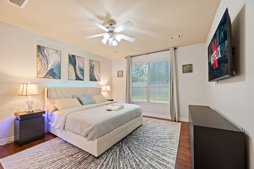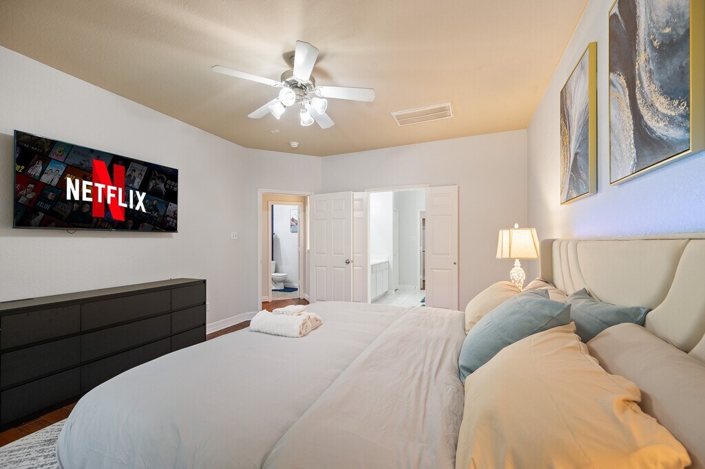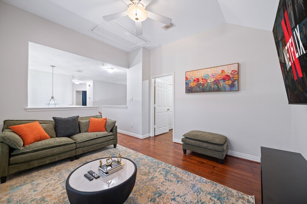 Welcome to your gorgeous fully furnished,4BR/2.5 bath short / long term rental retreat. The home features a foyer open to the ceiling with suspended 2nd floor walkway,large open family room with wood look floors,kitchen open to family room,stainless steel appliances,42" cabinets,large master suite with walk-in closet al on the 1st floor. The second floor features a large game-room with vaulted ceiling,3 secondary bedrooms with and a full bathroom. The X-large large backyard is an added bonus for sit outs,games and entertainment. Don't miss out on this beautiful vacation / temp housing retreat. MLS# 42233215