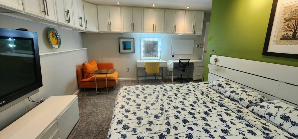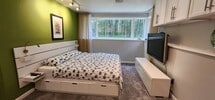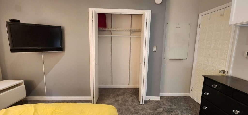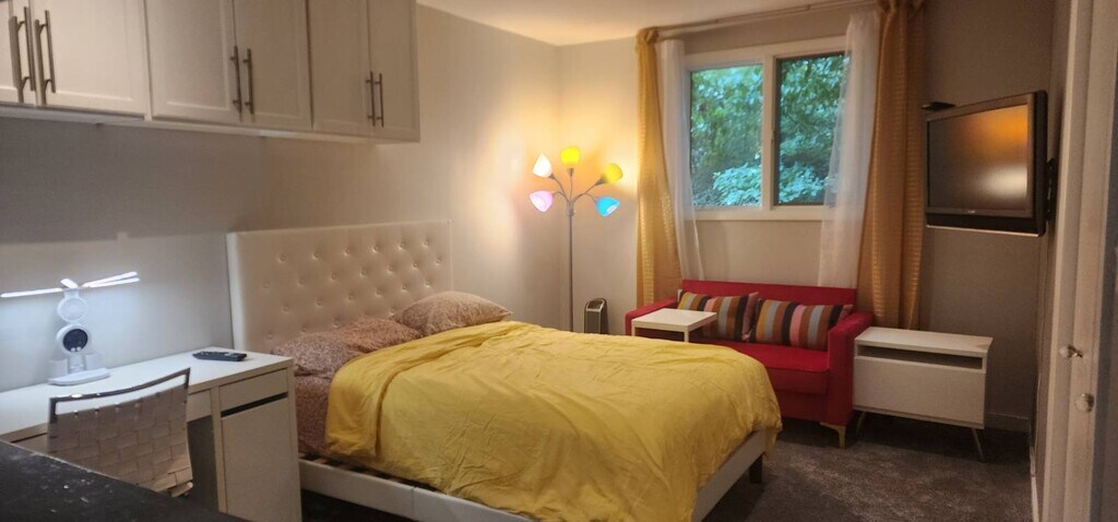 Entire home may be rented and rooms are available by Day, Week, Month, Semester or Year - Rates Vary By Room. This modern, hypoallergenic, spacious home, aimed for Penn State University students and professionals in transition, features three rental bedrooms, all with new plush carpeting, and fully furnished with a bed, comfortable mattress, bed linens, dresser, closet, couch, small table, desk, desk lamp, desk chair, curtains, white sound machine for added privacy, and TV with free included Roku, Prime TV and HBO Max. The large master bedroom (151/2' x 17', including a very large 10' x 6' walk-in closet) features an attached private double master bathroom (11'5" x 6'6") with double sinks, wide double shower, and 4 large mirrored cabinets. Also included are a king size bed, very large windows with a beautiful view of the forest, and extensive bedroom upper cabinet space. This room is $800/month and can be a shared double occupancy for a little extra cost ($300 for an extra person; $1100 total = $550/person). The second bedroom (15' x 101/2') has 2 large windows, a queen size bed, generous closet (51/2' wide) and a remote control floor lamp. The third bedroom (15' x 111/2") includes a double bed, large window, generous closet (51/2' wide), and considerable extra space in the upper cabinets. These 2 bedrooms have a shared bath (71/2' x 5') with 2 large private mirrored cabinets, and are $650/month each, or $200 extra for an additional person ($850 total = $425/person). All utilities are included: fast wifi, geothermal central air with temperature control in bedrooms, electricity, water, trash, and even generous private driveway parking. Also included with the bedrooms are a spacious shared kitchen with all appliances and kitchenware, large laundry room with front-loading, side-by-side washer and drier, countertop for folding, fold-up ironing board, air-drying rack and storage, as well as a large shared living room and dining room/den with a large sit-down table, library, games and sliding doors to the outside deck. The entrance has storage for coats and shoes, and there's modest storage available in the garage and attic if needed. Outside you'll have access to the spacious deck, live natural pond, fire pit, and lounging furniture on the large wooded property, next to extensive, accessible wooded trails, all in an upscale residential area known for its safe, peaceful setting and community of professionals. We are all international and diversity friendly, with all faiths tolerance. While hypoallergenic, there is 1 very friendly outdoor cat. The owner is a quiet, respectful woman with a quiet, respectful boy. This property is a 6-mile, 10-minute drive or 29-minute bike ride to State College city limits, a 9-mile, 15-minute drive or 45-minute bike ride to Penn State University or a 11/2-mile, 30-minute walk or 8-minute bike ride to the bus stop. Leases are per flexible time periods, month to month, no long pre-set time periods, just what's agreed upon ahead of time.