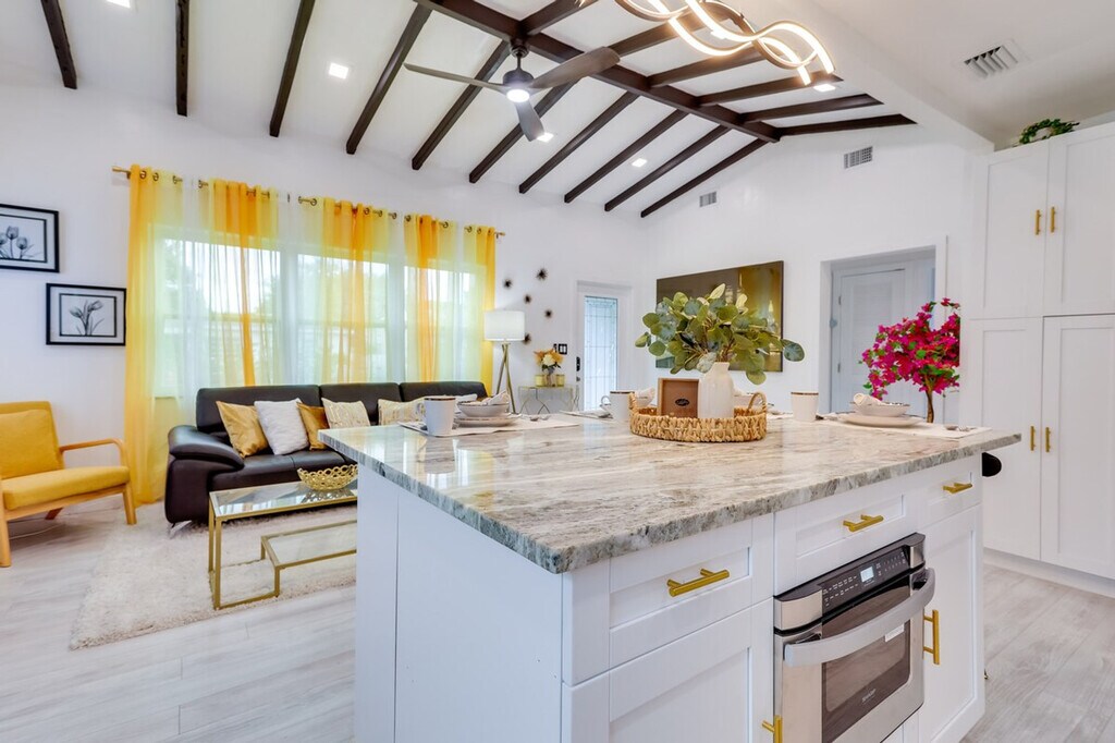 Dip your toes into Miami fun with this private, chic, and well-equipped abode! Situated near Miami Beach and Bayside Marketplace, this 3-bedroom, 2-bath vacation rental is the ideal home base for exploring the vibrant city. With ample space and a convenient location, this house is perfect for families or groups looking to make the most of their Miami getaway. This single-story home requires 4 steps to access. Enjoy a home-cooked meal in the fully equipped kitchen, complete with a fridge, stove and oven, microwave, toaster, toaster oven, Crockpot, coffee grinder, blender, ice maker, and water filter. The living area features 4 Smart TVs with cable, a PlayStation, board games, ceiling fans, central A/C, a supplementary mini-split A/C unit in bedroom 2, electric heat, and a decorative fireplace. Relax in the fenced-in yard or make use of the Nespresso Coffee Maker and combination washer/dryer. Parking is available in the driveway for up to 3 vehicles, with 1 space inside the gate. Located near Miami Beach and Bayside Marketplace, this home offers easy access to the vibrant attractions of Miami. Whether you're looking to soak up the sun or explore the city's lively culture, this location provides the perfect starting point. The property features keyless entry for easy access. Smoking, pets, and events, parties, or large gatherings are not allowed. Guests must be at least 21 years old to book. Additional fees and taxes may apply. Photo ID may be required upon check-in. The wood-burning fireplace is not available for guest use. Your safety matters, as the property is equipped with 3 exterior security cameras facing the front outdoor entry and the yard. They do not look into any interior spaces and actively record video and sound when motion is detected. Free WiFi is available throughout the home, ensuring you stay connected during your stay. [SI]
