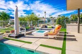 HIGHLIGHTS • Private Heated Pool & Spa with Tanning Shelf • Covered Patio with Al-Fresco Dining & Lounge • Central Fire Table for Cozy Evenings • Shuffleboard Table for Indoor Fun • Gourmet Kitchen with High-End Appliances • Luxe Modern Boho Interiors • Adjacent to Indian Wells Tennis Garden THE SPACE This 4-bedroom, 3-bathroom Indian Wells retreat blends resort-style outdoor living with high-end modern boho design, just steps from the Indian Wells Tennis Garden and minutes from top Coachella Valley attractions. Step into your backyard oasis, where you’ll find a private heated pool with an umbrella-shaded tanning shelf, a relaxing spa, and a covered patio with cushioned seating, ceiling fan, and al fresco dining for eight. Fire up the grill for an evening feast, then gather around the central fire table under the desert stars. Inside, vaulted ceilings, expansive patio doors, and luxe furnishings set a sophisticated tone. The spacious living area features a 65" smart TV and shuffleboard table, while the gourmet kitchen offers a French-door refrigerator, five-burner gas range, and large island perfect for cooking and gathering. The primary suite is a serene escape with a king bed, smart TV, seating area, pool access, and spa-worthy en suite with soaking tub and walk-in shower. Two additional bedrooms offer direct bathroom access with walk-in showers, and the fourth bedroom includes a queen bed, smart TV, and sitting nook. As a guest, you’ll also have access to The Huntley Community Pool, located just steps behind the home — heated in season for year-round enjoyment. SLEEPING ACCOMMODATIONS • Primary Suite – King bed, ensuite bathroom, pool access (Sleeps 2) • Bedroom 2 – King bed, ensuite bathroom access (Sleeps 2) • Bedroom 3 – Queen bed, ensuite bathroom access (Sleeps 2) • Bedroom 4 – Queen bed, smart TV, sitting nook (Sleeps 2) • Total guest capacity: Sleeps 8 (8 adults max) LOCAL ATTRACTIONS • Indian Wells Tennis Garden: Walking distance • PGA West & Local Golf Courses: Within 5 miles • Old Town La Quinta: 4 miles • Empire Polo Club (Coachella & Stagecoach Festivals): 6 miles • El Paseo Shopping District: 7 miles • Joshua Tree National Park: 30 miles • Palm Springs International Airport: 16 miles PARKING • Garage and Driveway parking for 2 vehicles