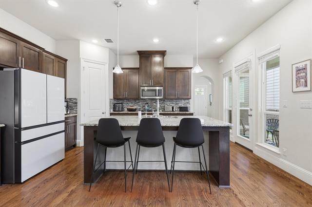 Available June 6! Live in the heart of Old Town Coppell! This east-facing home includes 3 bedrooms, 3 full bathrooms, a spacious front porch, and a flexible bonus room that could serve as a 4th bedroom, office, media room, or playroom. Washer, dryer, and refrigerator are included. Hardwood floors flow through the kitchen, living, and dining areas, with a two-story living room that brings in tons of natural light. The kitchen features granite countertops, a large island, pantry, and ample cabinetry, plus a built-in desk near the garage entry. Downstairs includes a guest suite with full bath, while upstairs you’ll find the primary suite with two walk-in closets and access to a large covered balcony, a third bedroom, another full bath, laundry room, and the bonus room. Just steps away from the Coppell Farmers Market, George Coffee + Provisions, the Coppell Arts Center, splash pad & playground, restaurants, shops, and city events like concerts in the park. No pets. Landlord pays HOA dues. HOA mows front yard.