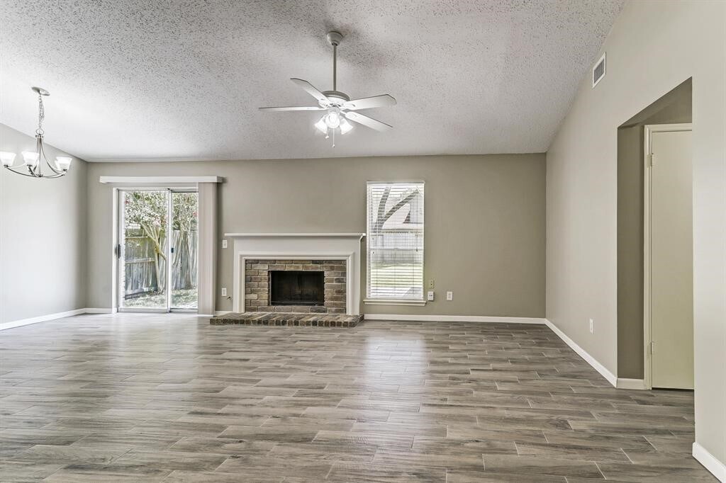 Need a quick move-in? Then,look no further. Updated primary bath that was just finished being remodeled. This home offers a cute kitchen and a convenient breakfast area for daily meals. The family room is open to an adjoining dining area. You will love that these rooms are bright and cheery. Plus the dining area has a sliding door out to the backyard. A cozy fireplace will keep the chill away on cool winter evenings. Updated primary bath that was just finished being remodeled. The bedroom has a lovely view of the backyard. All three bedrooms and the living areas have ceiling fans. Carpet has been removed. All three bedrooms have freshly installed wood grain tile flooring. Students attend nearby CFISD schools. You will find shopping and dining options nearby. Best of all? You won't have to worry about LAWN MAINTENANCE INCLUDED. MLS# 10245053