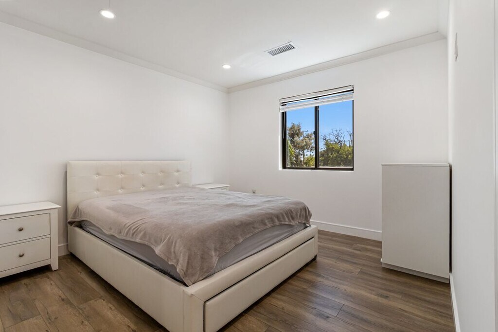 Modern North Hollywood Home with Complete Privacy & Natural Light Beautifully updated 2-bedroom, 2.5-bath home (approx. 1,280 sq. ft.) featuring an open, light-filled layout with two master bedrooms, each with its own bath, plus a guest half-bath. Central A/C, in-unit washer/dryer, and refrigerator included. Behind automatic gates, enjoy a large front yard with private cabana and BBQ area, three parking spaces inside the gates directly in front of the home, and total privacy. Home can be delivered furnished or unfurnished to fit your needs