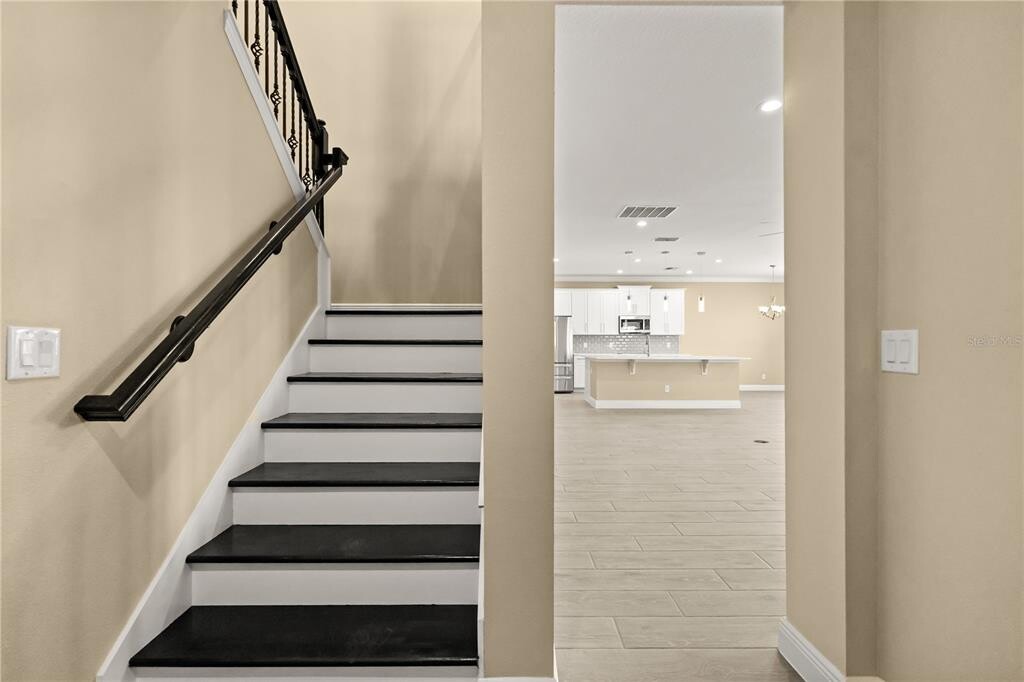 Gorgeous home at Ridgeview community,Virtual tour at link: Multi-generation in-law suite,with separate entrance door,with a lot of upgrades and improvements,premium lot back to large dry pond,no neighbor behind,7 bedrooms and 5.5 bathrooms,Low HOA fee,no CDD,NO CARPETS. with nice engineer wood flooring and wood like tiles,LED lights,ceiling fan with remote controls,crown molding,double solid wood stair case with iron balusters,upgraded closet shelves systems and lights,first floor with Casita room with cabinets and separate entrance and another guest suite and pool bathroom suites in first floor. Double stairs,On second floor,master bedroom suite and another 4 bedrooms and 2 bathrooms. Gourmet kitchen,quartz countertop in kitchen and in all bathrooms. long driveway to accommodate more car parking,Community HOA resort pool and playground park. Lanai screen enclosed and whole house gutter installed. MLS# O6361485