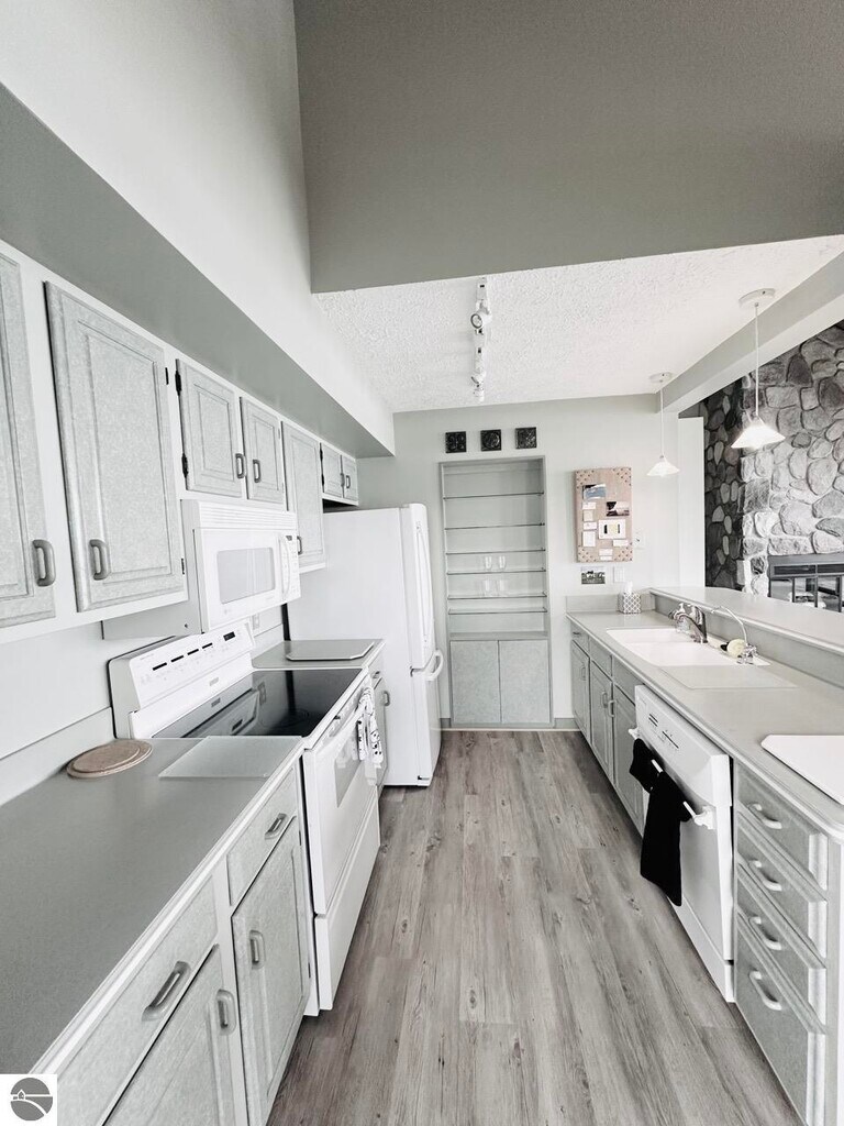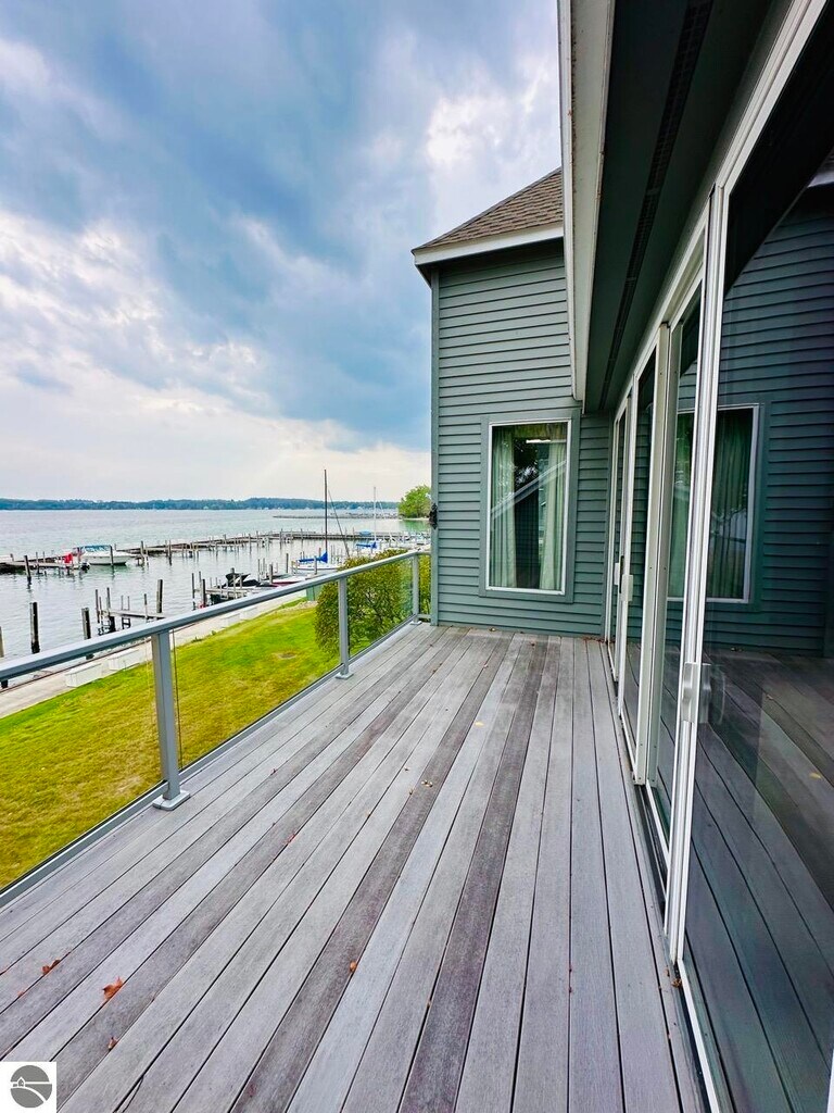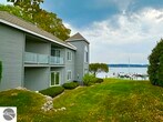 Welcome to this stunning waterfront Suttons Bay Yacht Club condominium, showcasing breathtaking panoramic views of the bay! With its well-maintained condition and abundant natural light, this open floor plan home boasts two bedrooms and three full baths. Upon entering, you'll be greeted by a gorgeous T&G wood vaulted ceiling and newer skylights, enhancing the bright atmosphere. The living area features a beautiful floor-to-ceiling stone fireplace fueled by natural gas, creating a cozy ambiance during cooler evenings. The kitchen has ample space for culinary creations. One notable feature is the presence of A/C throughout the condo, ensuring comfort in every season. Additionally, indulge yourself in relaxation with a whirlpool tub in one of the three bathrooms. Step outside onto your generous composite deck through an impressive 8-foot-tall patio door fitted with a new glass railing. This space invites you to bask in picturesque sunrises while observing all the activity on the water - truly an idyllic setting! The community amenities are equally impressive, including 1200 ft of bay frontage featuring a spectacular, massive sandy beach perfect for leisurely walks or picnics. Take advantage of additional perks such as an inviting pool area, an activity building for social gatherings, and tennis courts for some friendly competition. Also, you can enjoy easy access to Suttons Bay Village, which is just a short walk away. HOA does not allow pets for renters. Available now through August 1, 2026. No less than 6 months, please. Please take a look at the documents for the RentSpree Application and also the Yacht Club regulations.