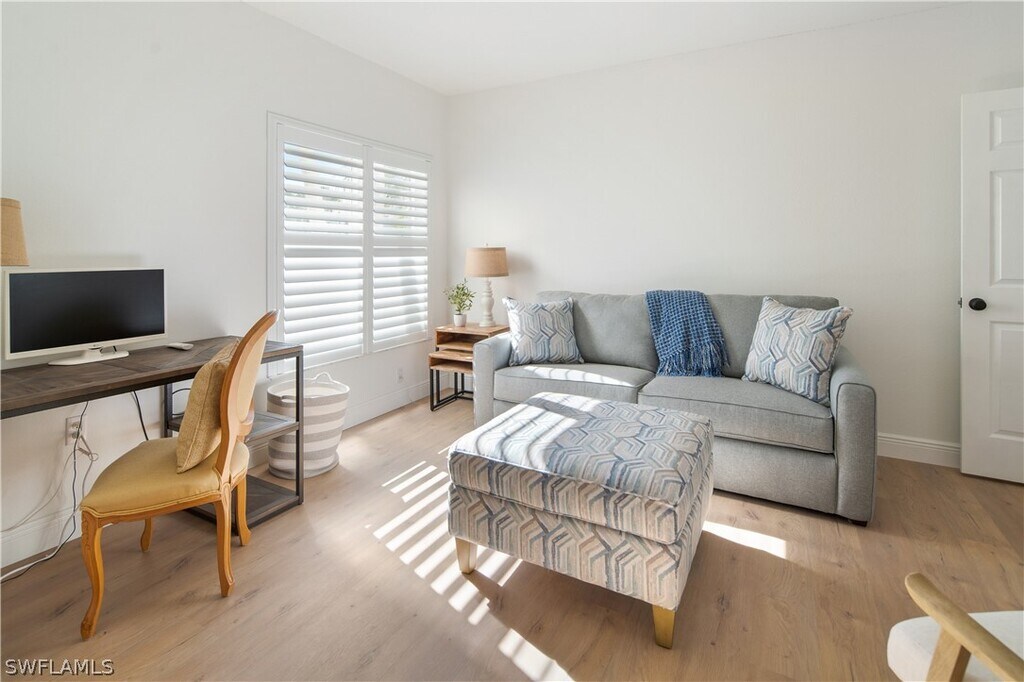 Located in prestigious Pelican Bay Beach Community. This beautiful first floor end-unit recently updated 2 bedrooms + den turnkey rental located within Willow Brook is ready for arrival. Southern exposure with views over the lake this spacious condo is located next to the courtyard and outdoor grill area. The condo has 2 large walk-in closets,upgraded flooring,beautiful white cabinets with quartz countertops. The den is equipped with a desk and pullout sleeper sofa.