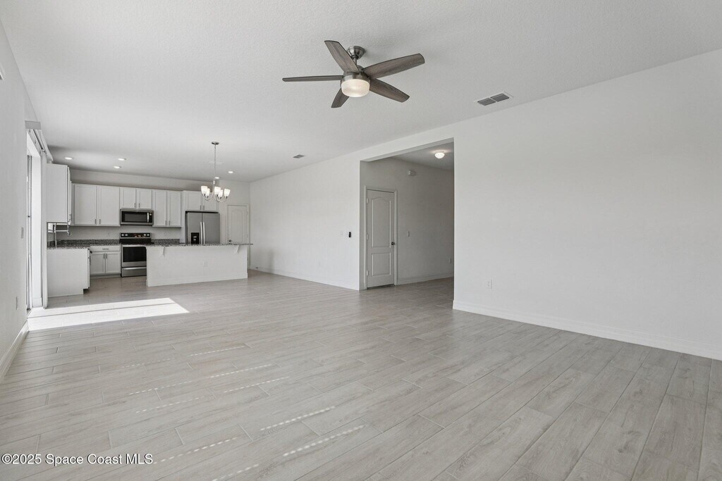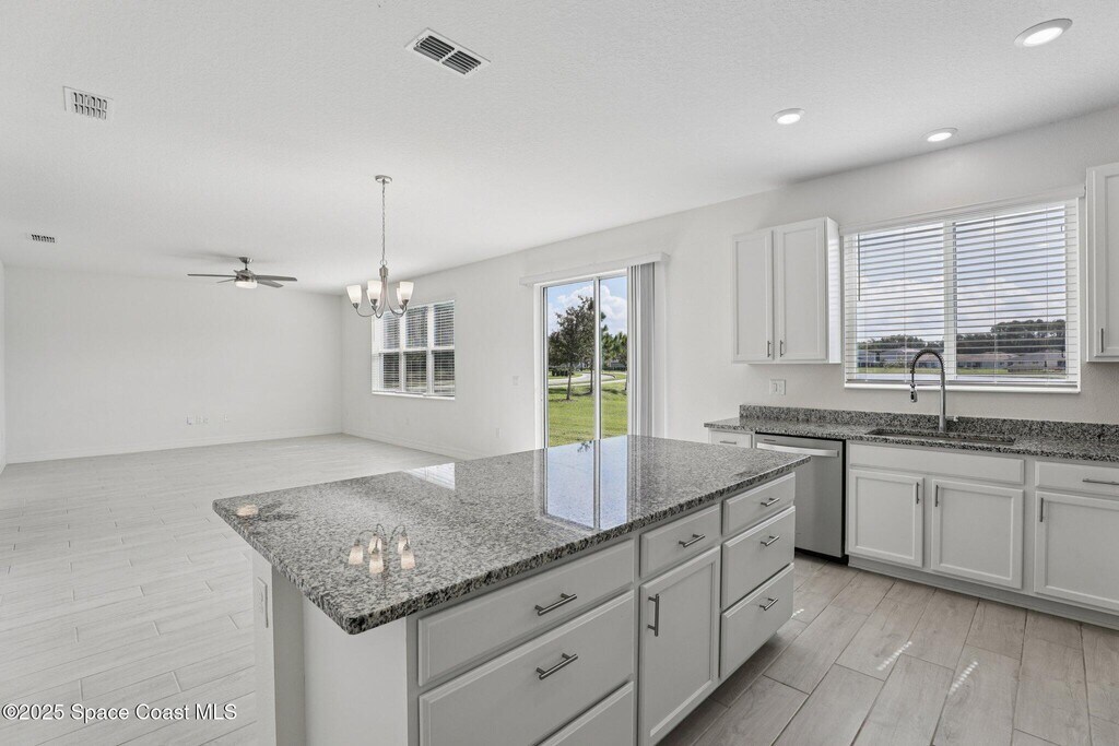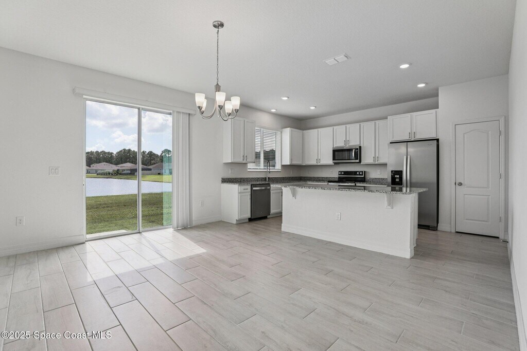 Beautiful Waterview Corner Lot Home Built in 2022! This spacious 2-story home offers 5 bedrooms and 3 full bathrooms with a great floor plan for families. The bright white kitchen features granite countertops,stainless steel appliances,and a beautiful lake view. One bedroom and full bathroom downstairs make it ideal for guests or multi-generational living. Upstairs,you'll find the primary suite with an upgraded bathroom and glass shower doors,plus three additional bedrooms and two full bathrooms. The 2-car garage includes epoxy floors,and the home comes with brand-new appliancesrefrigerator,dishwasher,microwave,range,washer,dryer,and blinds. Located on a large corner lot in Verona,one of Titusville's newest communities,residents enjoy family-friendly amenities like a clubhouse,fitness center,swimming pool,splash pad,playground,and pickleball courts Conveniently located just 25 minutes to Port Canaveral and Cape Canaveral beaches,25 minutes to shopping and dining in Viera,and 36 minutes to Orlando International Airportthis home offers space,comfort,and an excellent location for the whole family.