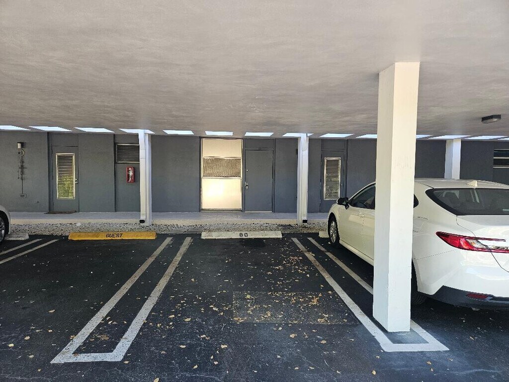 Great one bed one bath with beautiful lake views from your large screened patio! All brand new laminate wood flooring and baseboards. Just freshly painted inside. Covered carport parking spot right in front of your unit. Property is a certified wildlife habitat with a walking trail around the lake and a heated pool on a island. Laundry rooms on 2nd and 3rd floors. Close to shopping centers and 5 minute drive to the beach. MLS ID F10537941