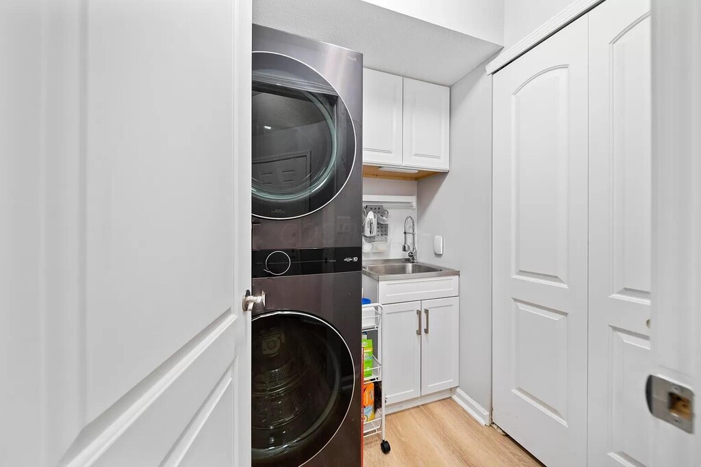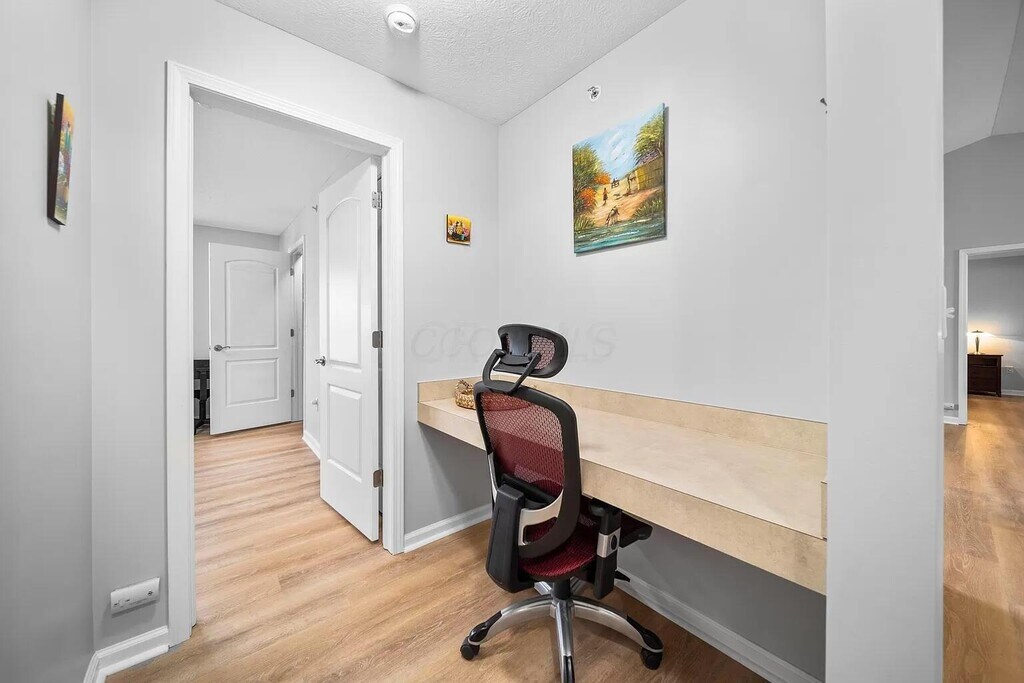 Top-Rated Dublin Schools! Beautiful second-floor condo with a private 1-car garage in a secure entry building. Recently upgraded with durable,modern LVP flooring throughout. The kitchen features sleek black stainless appliances,quartz counters,a subway tile backsplash,and tall white cabinetry for a timeless look. Two spacious bedrooms are located on opposite sides of the home for added privacy,each with its own full bath and walk-in closet. The primary suite includes a tub/shower combo,while just outside the secondary bedroom you'll find a convenient built-in desk. The open-concept living area with vaulted ceilings creates a bright,airy feel. Enjoy outdoor relaxation on the balcony,which also includes a storage closet. This one-level condo has no neighbors above! Community amenities include a clubhouse with fitness center,pool,and HOA-covered internet/cable. Excellent opportunity to get into Dublin at an amazing value—schedule your showing today!
