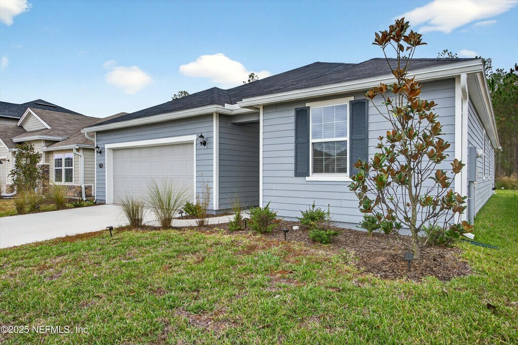 Welcome to this exceptionally well-maintained 4-bedroom,2-bath home located on a peaceful cul-de-sac with a private wooded backdrop. Designed for comfort,style,and easy living,this home offers a spacious open layout filled with modern finishes and thoughtful upgrades throughout.Inside,you'll find luxury vinyl flooring in the great room,hallway,and kitchen,along with 9-foot ceilings that enhance the bright,airy feel. The gourmet kitchen features stainless-steel Whirlpool appliances,granite countertops,42-inch upper cabinets with crown molding,and a large wet islandperfect for cooking and entertaining. The primary suite includes a generous walk-in closet and a spa-like bathroom with a dual-sink vanity and quartz countertops. Enjoy peaceful evenings on your large covered patio overlooking the wooded preservean ideal space for relaxing or entertaining. Lawn care is included,making maintenance effortless. Located in the desirable Copper Ridge community,residents enjoy access to amenities including a resort-style pool,playground,and dog parks. The home is just minutes from Oakleaf Village and Merchants Way,providing quick access to shopping,dining,and everyday conveniences. This home blends modern luxury with everyday functionality,ALMOST NEW don't miss the opportunity to rent this beautiful property! MLS# 2120724