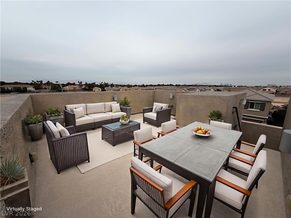 Stunning Strip & mountain views from this remodeled tri-level dream home featuring a private rooftop deck with breathtaking 360 city views and a massive backyard. Chef’s kitchen with quartz countertops, extended cabinetry with crown molding, and upgraded stainless steel appliances. Luxurious primary suite with enormous walk-in closet and spa-inspired marble showers. Spacious split-level layout includes loft, secondary bedrooms, laundry room, and dedicated craft/office nook. Smart home features and modern fireplace beneath mounted TV complete the space. No pets. Tenant responsible for electric, gas, water, and cable/internet; landlord covers sewer, trash, HOA, and landscaping.