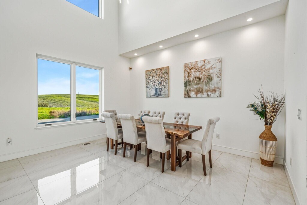 7778 Laguna Heights Court – Exquisite Privacy Meets Inspired Design. Nestled behind two private gates on 2.57 acres of serene Sunol landscape,this exceptional custom estate offers the ultimate blend of privacy,premium craftsmanship,and timeless style. Surrounded by rolling hills and open views,this residence is a rare sanctuary just minutes from Pleasanton and the East Bay’s vibrant hubs. Designed for both beauty and efficiency,the home features owned solar and a Tesla Powerwall,providing energy independence,sustainability,and peace of mind without compromising luxury. Step inside to an expansive open layout that celebrates effortless entertaining and everyday living. The heart of the home is an extra-large chef’s kitchen featuring quartz countertops,abundant custom cabinetry,and space for professional-grade appliances,perfect for both casual family meals and memorable gatherings. High ceilings,luxury tile flooring,and abundant natural light create a luminous ambiance throughout. Elegant living spaces flow seamlessly,from generous formal rooms to comfortable family areas,each thoughtfully oriented to capture the natural beauty surrounding the estate.