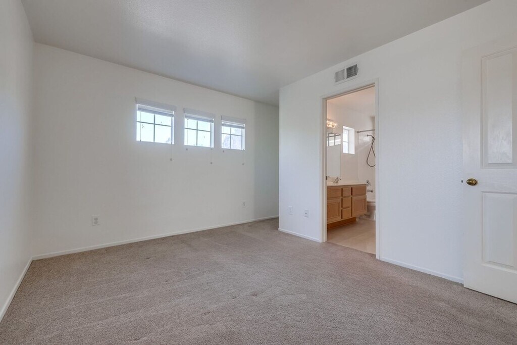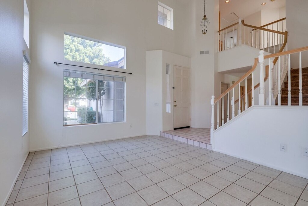 This two-story home is a few steps away from the local Elementary School in the Discovery Hills community. It has vaulted ceilings, tons of natural light, fruit trees in the backyard and is ready for move-in! On the main floor, there is one room that could be used as an office with glass french doors and an alcove that could be used as a closet or desk area. There is also a bathroom with shower on the first floor. The family room has a fireplace and the entire lower level is tile flooring. Upstairs you will find two bedrooms sharing a Jack and Jill style bathroom. Both bedrooms have great light exposure and newer carpet. The primary suite has vaulted ceilings and large windows overlooking the backyard. The master bath has a stand-up shower along with dual vanities, two closets, and a large soaking tub. This location is everything as you are only a stone's throw away from schools, parks, and Discovery Lake, with just a short walk down Via Vera Cruz to Restaurant Row. Newer furnace and air conditioning Refrigerator included without warranty Tenant pays all utilities Gardener included Washer and dryer hookups available Call or text to schedule a showing today!