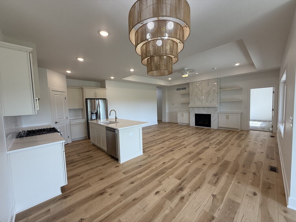 BRAND NEW,HUGE BI-ATTACHED CUSTOM BUILT TOWNHOME WITH 2500 SQUARE FEET OF FINISHED LIVING! Executive townhome available for immediate move-in. This never lived in home boasts 4 bedrooms and 3 full bathrooms, all with quartz counters, custom tile work and high end designer finishes. Relax and enjoy the peaceful backyard retreat on your covered patio while gazing across the pond. There is an abundance of storage throughout in the large laundry room, attached 2 car garage, and large unfinished storage room downstairs. Beautiful custom wet bar in the basement makes this level perfect for entertaining. High ceilings throughout add to the open feel of this spectacular home. Main level is all LVP outside of the master bedroom/closet and second bedroom. Lawn care & snow removal are included in the rental price. Unit includes all brand new stainless appliances (no washer/dryer are included). Don't miss out on this tremendous brand new custom home!