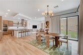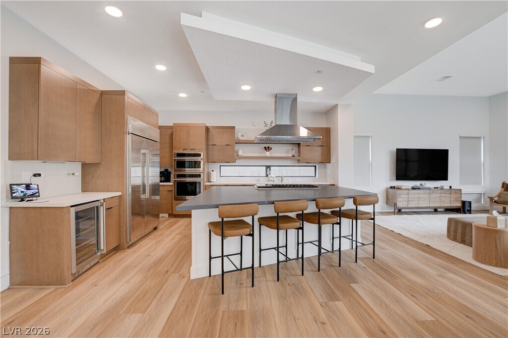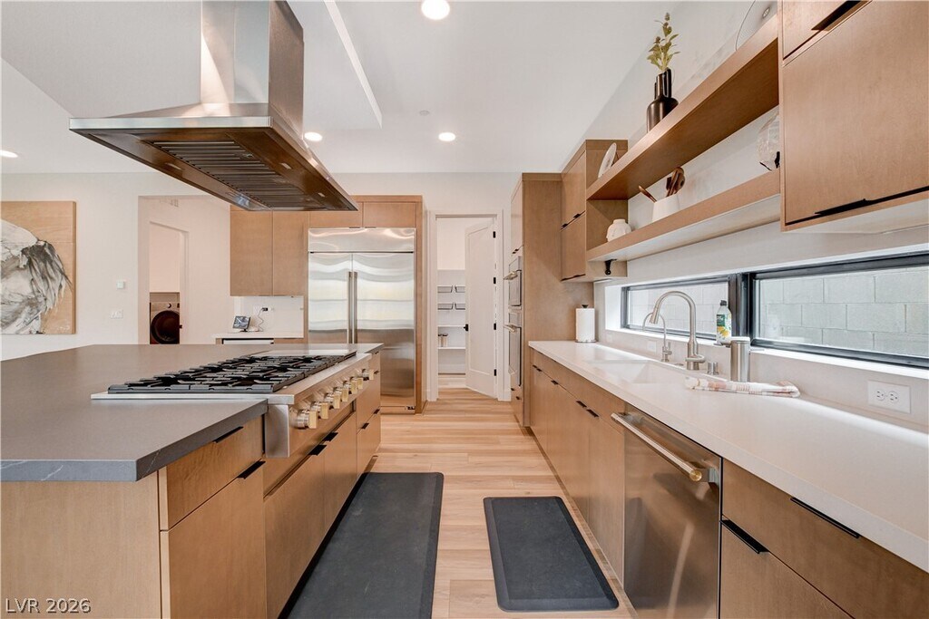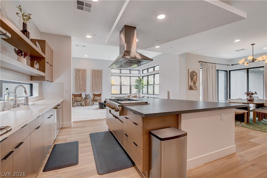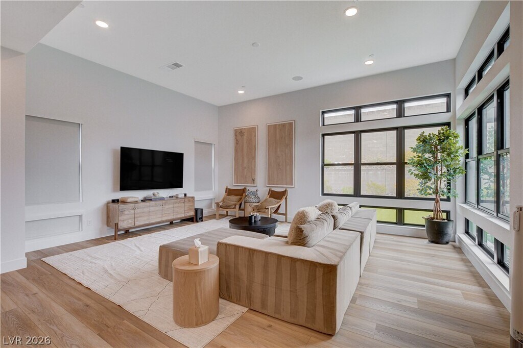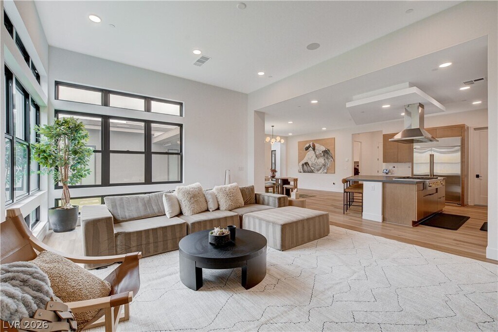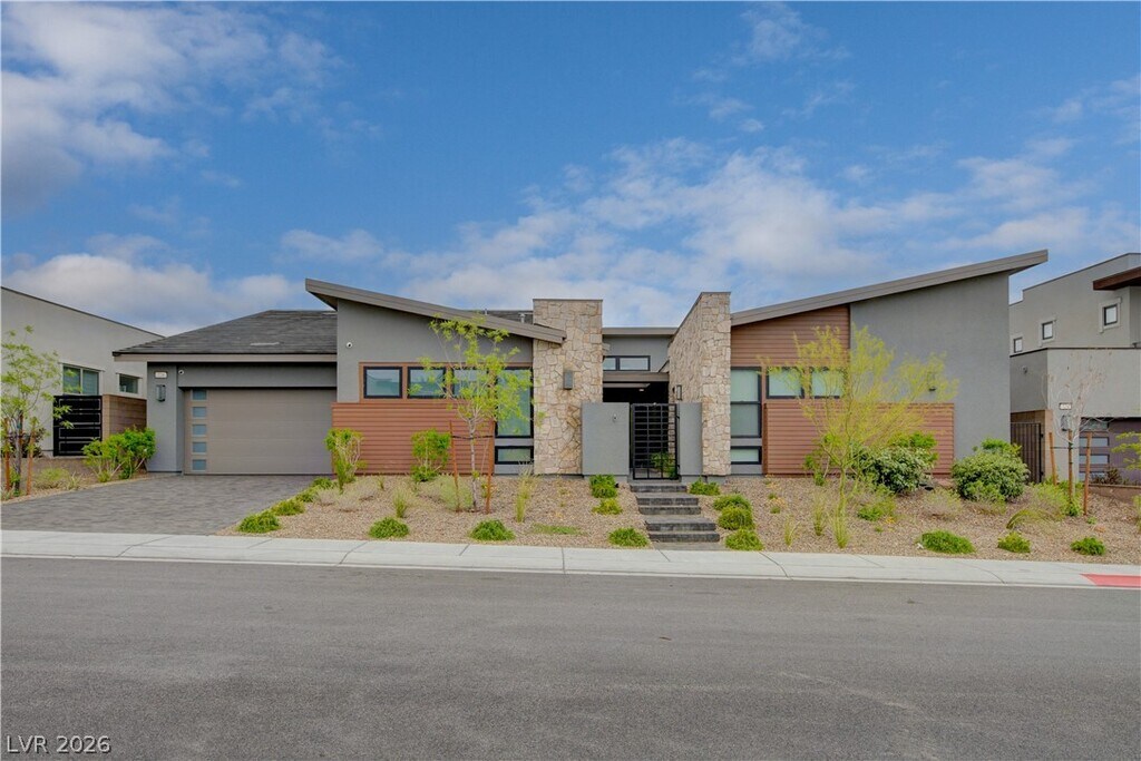 Experience the pinnacle of modern luxury in this stunning 3-bedroom, 3.5-bathroom single-story home, situated in the exclusive Sandlewood community of West Summerlin. This exquisite property spans over 3200 square feet, offering a sophisticated design with clean lines and high-end finishes. As you enter through the grand foyer, you are welcomed into a spacious open-plan living area that features soaring ceilings and floor-to-ceiling windows, creating a bright and inviting atmosphere. The living room seamlessly transitions into the dining space and a state-of-the-art kitchen equipped with top-of-the-line stainless steel appliances, sleek quartz countertops, and a large island perfect for casual dining and entertaining. The master suite is a luxurious sanctuary with a massive walk-in closet, and a spa-like en-suite bathroom featuring a freestanding tub and dual vanities. Two additional bedrooms offer ample space, each with access to its own bathroom. Includes trash and sewer.