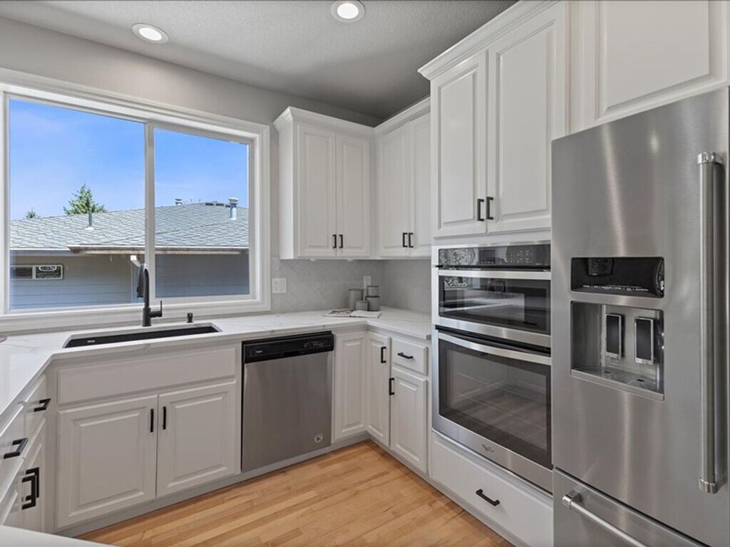 This fully renovated 3,274 square foot home offers a perfect balance of modern comfort and timeless design. Nestled alongside the Northridge Woods Natural Area, the property provides stunning tree-line views and a serene backdrop for everyday living. The main level features a bright and open floor plan with a seamless flow between the living room, dining area, and kitchen—perfect for entertaining or gathering with family. The chef’s kitchen has been beautifully updated with quartz countertops, stainless steel appliances, and ample cabinet space, while the adjacent living space is filled with natural light. The primary suite is conveniently located on the main living floor, offering privacy and ease of access, and includes a large walk-in closet and a spa-like bathroom with a soaking tub. A dedicated office or bonus room provides flexible space for work or play, while a convenient laundry room with washer and dryer adds everyday functionality. The main-level deck provides a peaceful spot to take in the wooded views. Downstairs, the lower level includes three generously sized bedrooms, each with their own unique layout and charm, along with additional living space and a versatile bonus room. A private guest suite with its own bedroom and bath provides a comfortable and private option for visitors or extended stays. The bathrooms have been fully updated with modern finishes, and a private deck off this level allows for quiet relaxation or entertaining with a view. The unfinished basement provides abundant storage options, along with access to yet another lower-level patio and deck. A two-car garage completes the list of amenities, while the brand-new HVAC and central A/C systems ensure year-round comfort and energy efficiency. Conveniently located near parks, schools, shopping, and dining, this property combines the best of nature, comfort, and accessibility. This home is available now—don’t miss the opportunity to make it yours.