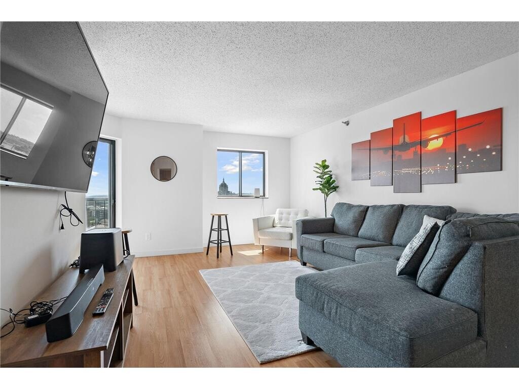 Don't miss out on what has been referred to as "best layout in the building"!! This great 2 bedroom, 2 bath unit is spacious and bright! Being on the 21st floor, the private balcony offers breath-taking views of St Paul, including a great view of the cathedral, and the most amazing view for sunsets! The unit features LVP throughout the main living spaces, butcher block countertops and a gorgeous and functional apron sink in the kitchen. There is also a very large walk-in pantry/storage closet in the unit. Pets are welcomed and amenities abound at The Pointe! Your monthly HOA dues cover all the basics such as building exterior, professional management, all outside maintenance, security and sanitation. BUT, they also cover a ton of other amazing amenities! You get access to the indoor swimming pool, sauna, hot tub, workout room, basketball, tennis court, rooftop deck, grilling patio, and access to a beautifully renovated guest suite that you can rent nightly if you have too many guests visiting to accommodate. The coolest and newest addition to the community: the vibrant and colorful Pedro Park, located directly across the street, has been newly expanded and revamped with volunteer garden beds, an interactive water feature, an pavilion and performance space, playground, a synthetic turf dog run and a green space! Only available due to relocation, NOW is the BEST time to get in while the prices are low! According to the St Paul Parks Conservancy, studies show that "well-designed parks can increase property values by an average of 30% within a 3-block radius." With food and shopping all within walking distance, and so many amenities included with the building, Pedro Park fills in the much needed gap of community engagement in the immediate area for a perfectly well-rounded location to call your home!