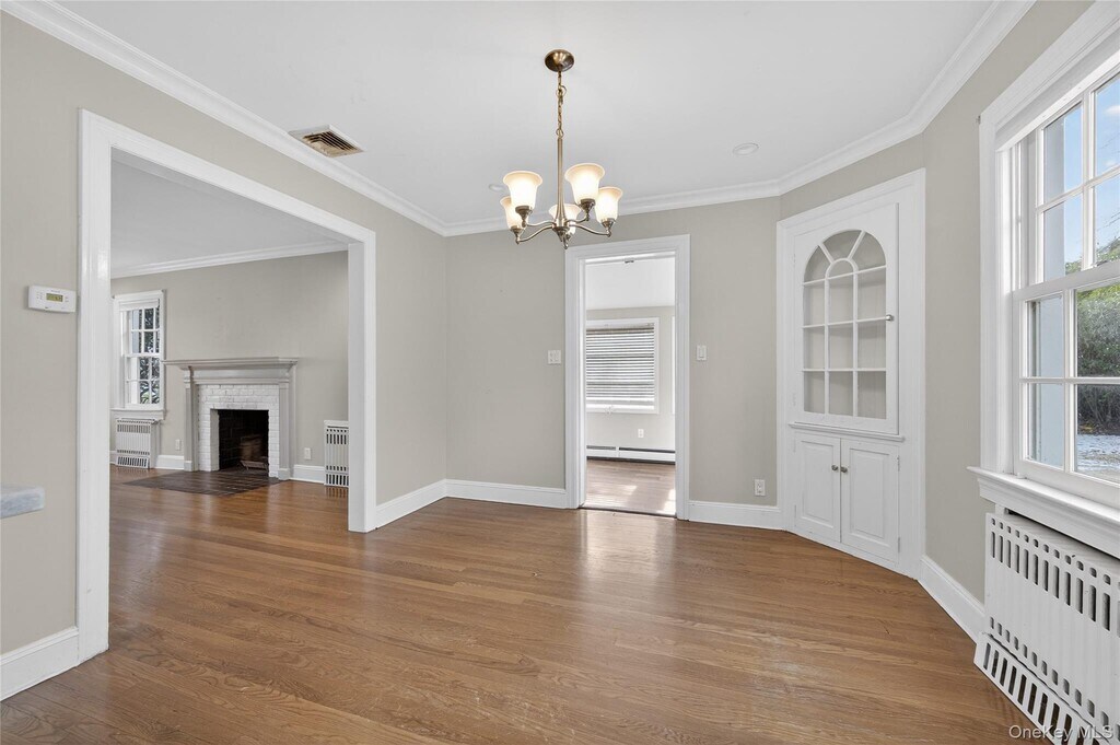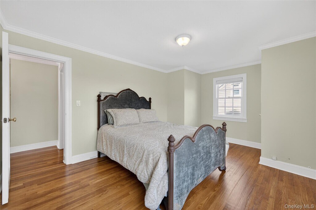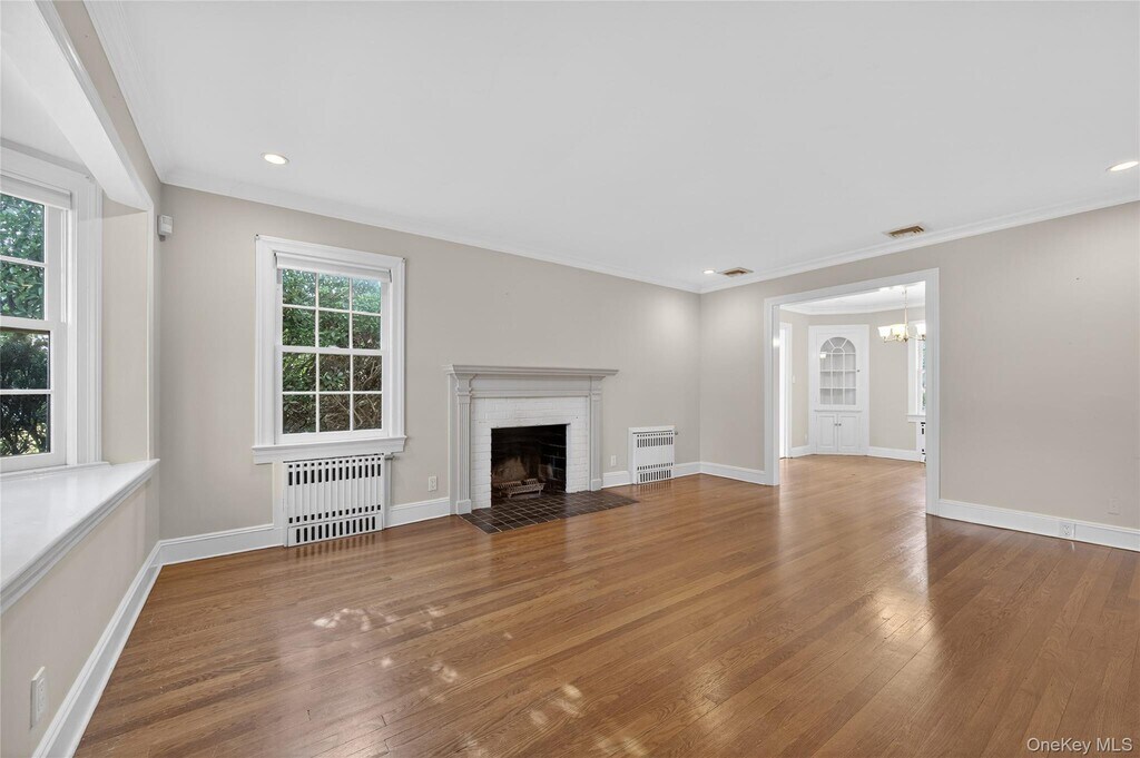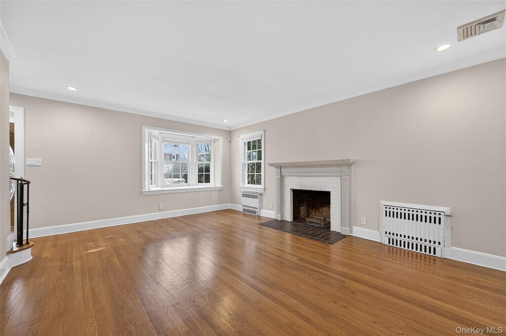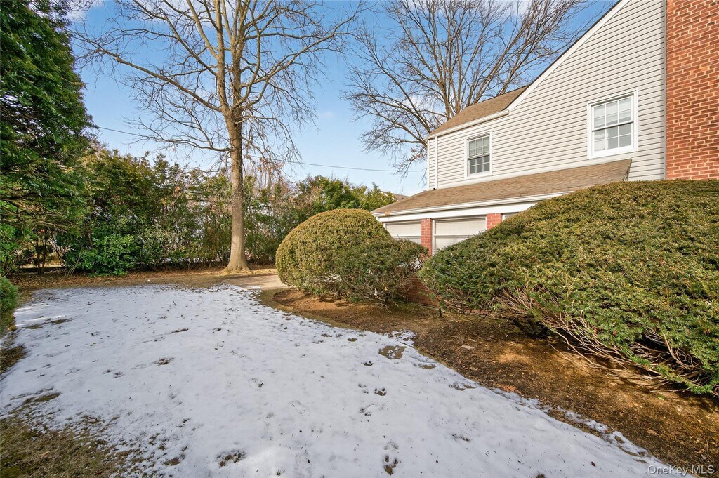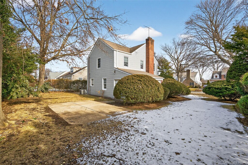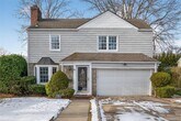 This warm and inviting 4 bedroom Colonial offers a functional layout with cozy living spaces. The first floor flows from a spacious living room with a wood-burning fireplace into a formal dining room and an updated kitchen appointed with quartz countertops and stainless steel appliances. A den and renovated bath complete the level. Upstairs, the generous primary bedroom is joined by three additional bedrooms and a stylish full bath featuring a double vanity and dual showers. Excellent storage can be found throughout, including a pull-down attic, basement, and an oversized 2-car attached garage. Set on an 80x100 lot, the property provides wonderfully private backyard space. All conveniently located close to schools, the LIRR, shops, and restaurants.