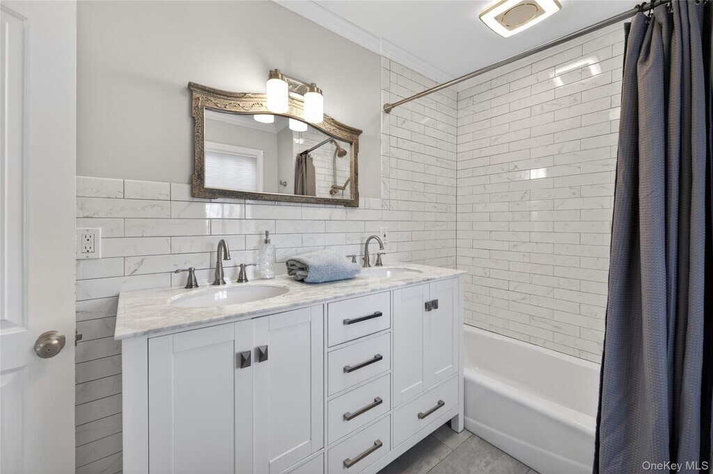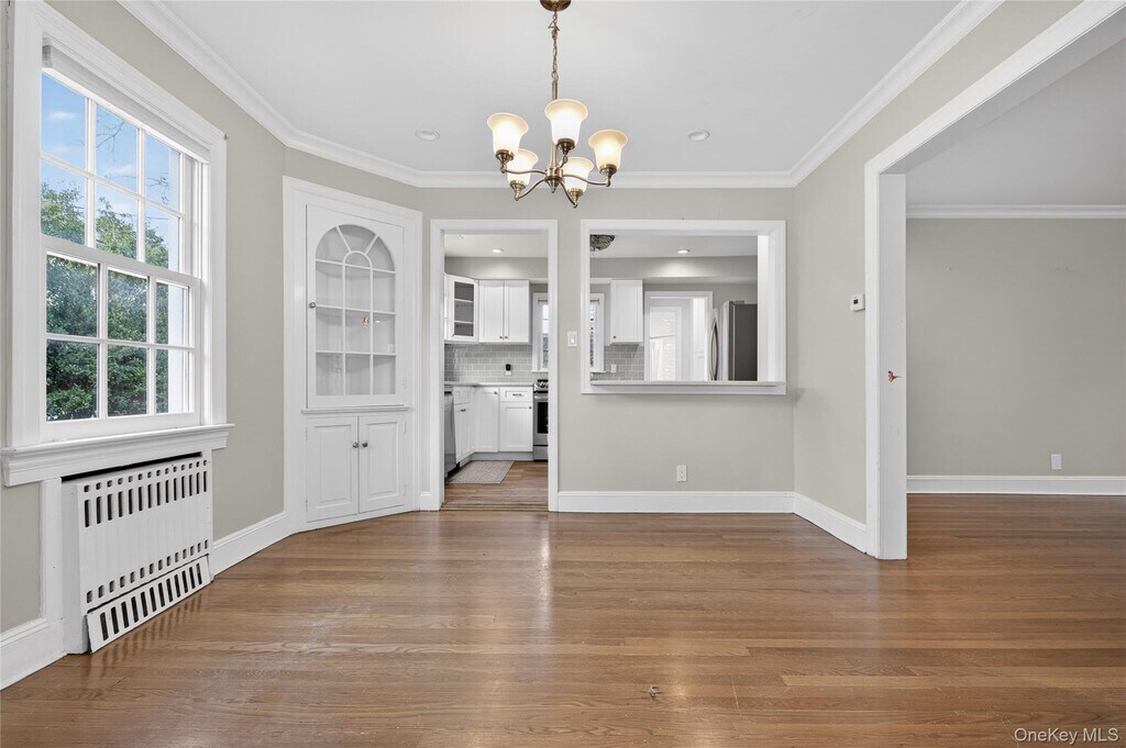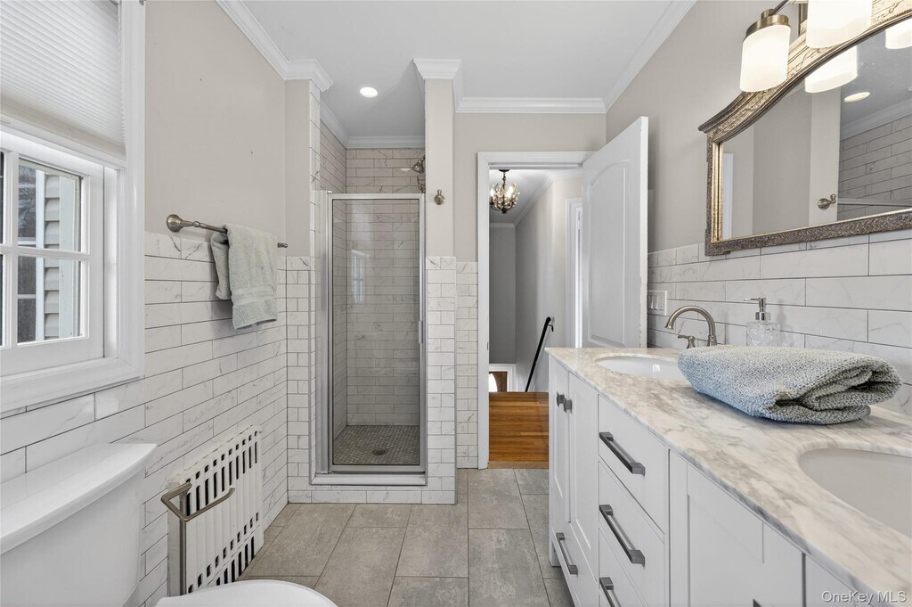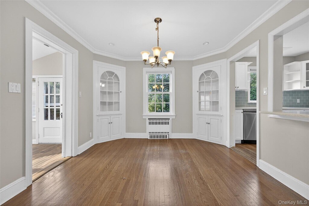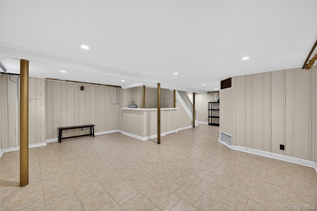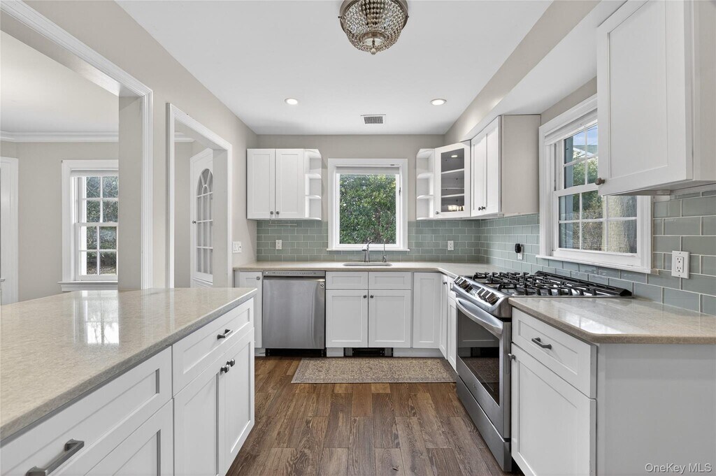 This warm and inviting 4 bedroom Colonial offers a functional layout with cozy living spaces. The first floor flows from a spacious living room with a wood-burning fireplace into a formal dining room and an updated kitchen appointed with quartz countertops and stainless steel appliances. A den and renovated bath complete the level. Upstairs, the generous primary bedroom is joined by three additional bedrooms and a stylish full bath featuring a double vanity and dual showers. Excellent storage can be found throughout, including a pull-down attic, basement, and an oversized 2-car attached garage. Set on an 80x100 lot, the property provides wonderfully private backyard space. All conveniently located close to schools, the LIRR, shops, and restaurants.