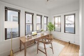 Renovated Craftsman-Style apartment with 7 rooms,2+ bedrooms,2 full modern bathrooms of a classic 1918ca two-family. Located 2 blocks from Cushing Square,this unit features modern amenities and old-world charm. Contemporary kitchen with high-end European stainless steel appliances,stone countertops,oversized windows and and a Southwest facing deck for lovely afternoon sunsets. Open & airy throughout with period architectural details including beamed-ceilings,wood burning fireplace,French Doors,hardwood floors and built-ins.. One bathroom renovated with classic subway tile,deep soaking tub and German fittings. The other bathroom has a walk-in curbless shower with European fittings and heted floors. Large yard,2-car parking,newer gas forced hot water heating with multiple zones,ample storage and tons of light throughout. Pet friendly & lead-safe compliant. MLS# 73461380
