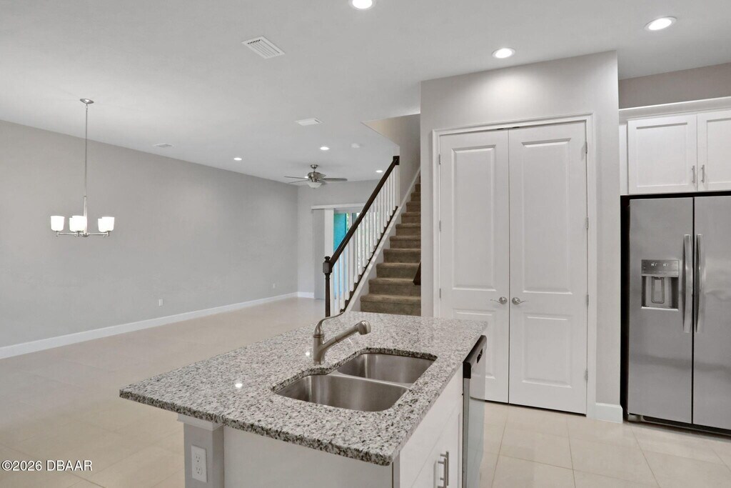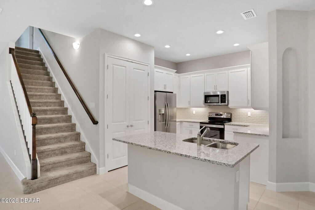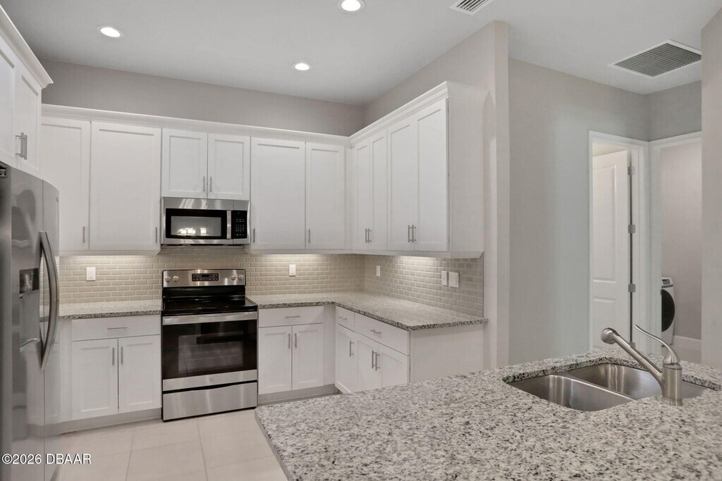 Gorgeous two-story townhome in the highly sought-after Plantation Bay gated community. This home offers 3 bedrooms,and 3 bathrooms. The primary suite,1 guest bedroom & bathroom are conveniently located on the main floor,along with the utility room. Kitchen is equipped with 42'' kitchen cabinets,upgraded granite countertops,and stainless appliance package. Completely tiled throughout the First Floor living areas Upstairs,you will find a third bedroom,full bathroom,and two walk-in closets along with a large loft/living room area. With two full bathrooms on the main level,this townhome blends comfort and functionality,with a quiet preserve view from your private screened in lanai. All within a premier golf and country club community. All amenities are an extra fee.