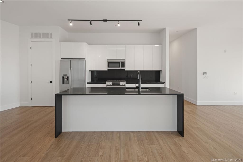 Call for Availability - Contemporary luxury in the heart of downtown Fairfield! Designed and developed by award winning Granoff Architects, this building blends a streamlined urban edge with its classic Connecticut surroundings - all at your fingertips. The 9 ft+ ceilings and oversized, black framed windows complement the crisp white interiors and wood grain (LVT) floors. The details and finishes are best in class. Stunning kitchen with stainless steel Bosch appliances and a generous center island open to both living and dining spaces creating a flexible living layout. Stacked washer and dryer in every unit and plenty of multi-purpose storage/closet space. Gorgeous rooftop terrace for shared/common tenant use is also available for private tenant use twice a year. Equipped with the latest in modern technology with 6 EV charging stations in the parking garage and a 24/7 Carson remote doorman service. Within proximity to all of Fairfield's best amenities - downtown restaurants, shops, music venues, beaches and train. The Fairfield Station Lofts is a truly wonderful introduction to life in vibrant Fairfield County. MLS# 24105814