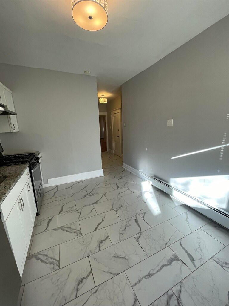 Welcome home to this bright and spacious 2-bedroom, 1-bath apartment on a quiet residential block of Bayonne. This home blends classic charm with modern upgrades, featuring high ceilings, detailed ceiling moldings, and beautifully refinished hardwood floors throughout the living areas. Apartment Features: Large upgraded kitchen with white shaker cabinets, granite countertops, modern backsplash, and oversized marble-look tile floor Stainless steel appliances including gas range, dishwasher, and full-size refrigerator Pantry off the kitchen for extra storage Two true bedrooms with great natural light and hardwood floors Separate living room and den – ideal for a home office, playroom, or additional lounge space Updated bathroom with tile floor, wainscoting, and tub/shower combination Shared washer and dryer on-site for added convenience Modern light fixtures and neutral paint throughout for a clean, move-in-ready feel Located at 78 W 6th St, Bayonne, this apartment sits on a residential block just minutes from Broadway shops, local restaurants, parks, and public transportation, with convenient access to the light rail and major highways.
