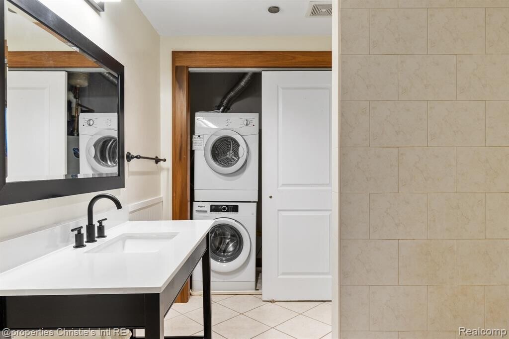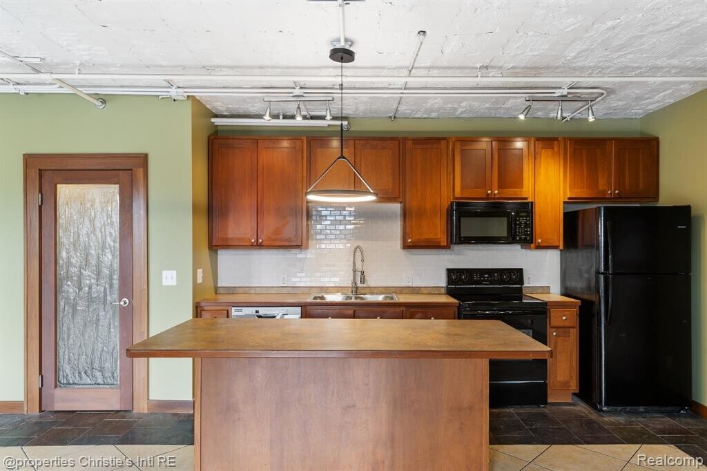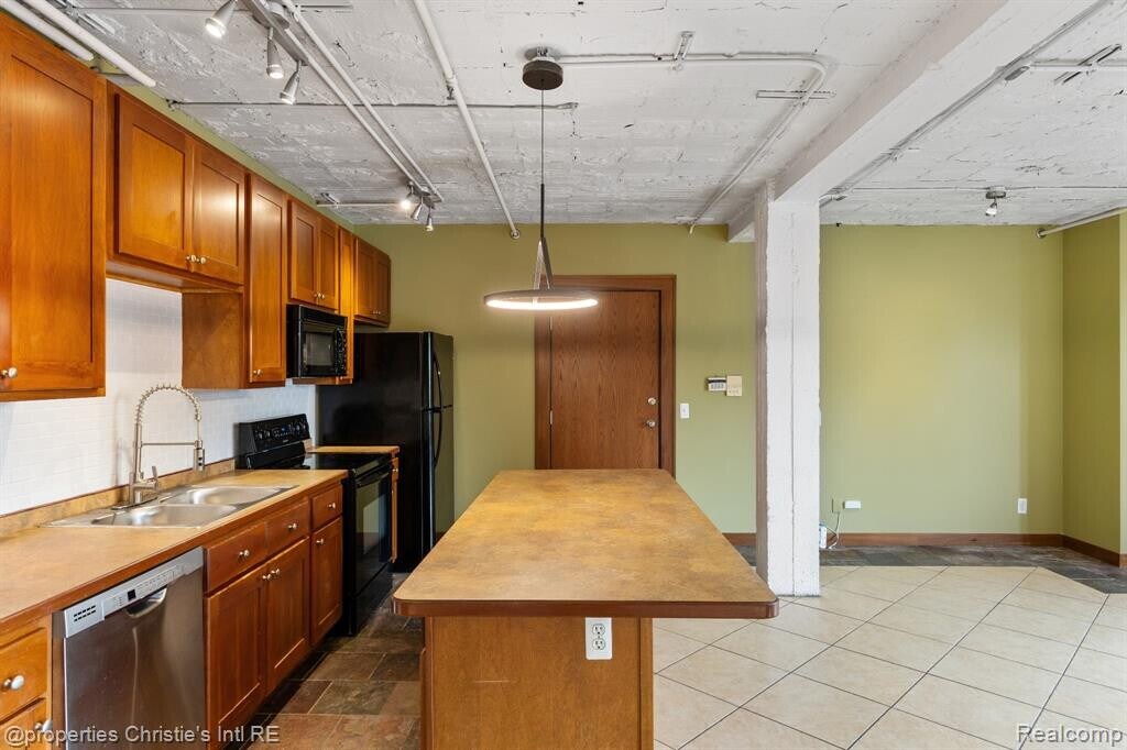 Welcome to this one-of-a-kind loft, where modern industrial design meets modern living in the heart of Brush Park. This stunning 1,200-square-foot, single-level condo is an urban enclave offering an accessible downtown location with light & space. Step inside & be awed by the striking open-concept layout, defined by its authentic architectural elements. Exposed Brock block ceilings and a harmonious mix of polished concrete and tile floors create a sleek, minimalist aesthetic. The space is softened by the warmth of abundant exposed brick and poplar wood trim accents, adding character and charm throughout. The living area is bathed in natural light from large windows that frame views of the Detroit skyline. It's the perfect backdrop for both everyday living and entertaining. Just off the main living space, a private deck provides ample room for an outdoor living creating an ideal spot for morning coffee or evening cocktails with a view. The kitchen has great flow and ample countertop space with function, featuring a fantastic butler's pantry/storage room that will delight any home cook. The primary bedroom is a sanctuary, offering a generous walk-in closet to keep your space organized. The expansive primary bathroom is a retreat, boasting a large, separate shower and another tub/shower combo to accommodate more than 1 to bathe at once. Convenient dedicated laundry area inside the primary bath is accessible. Comfort is paramount, with radiant in-floor heating providing cozy warmth in the winter, complemented by a mini-split system for efficient central air conditioning during warmer months. Located in a gated community with camera monitoring system at the main entry and exterior common areas. For added convenience, the unit is on one level with elevator access from main entry. The property also includes a detached garage with a tall ceiling, providing generous space for a car, bikes, and extra storage. This loft isn't just a place to live—it's a lifestyle.