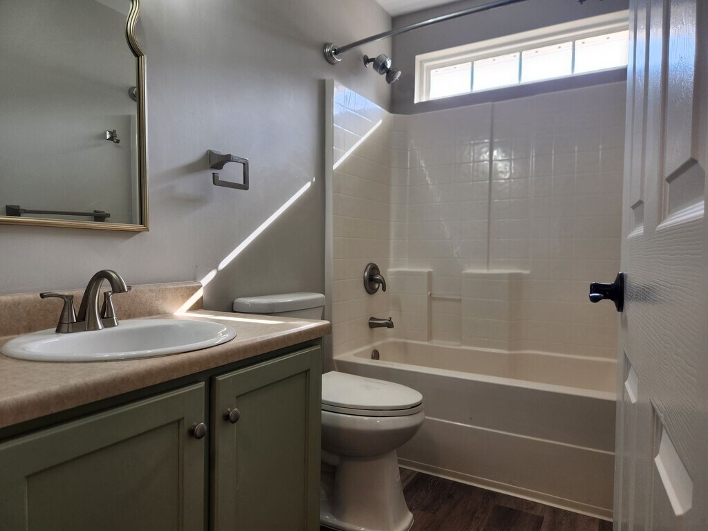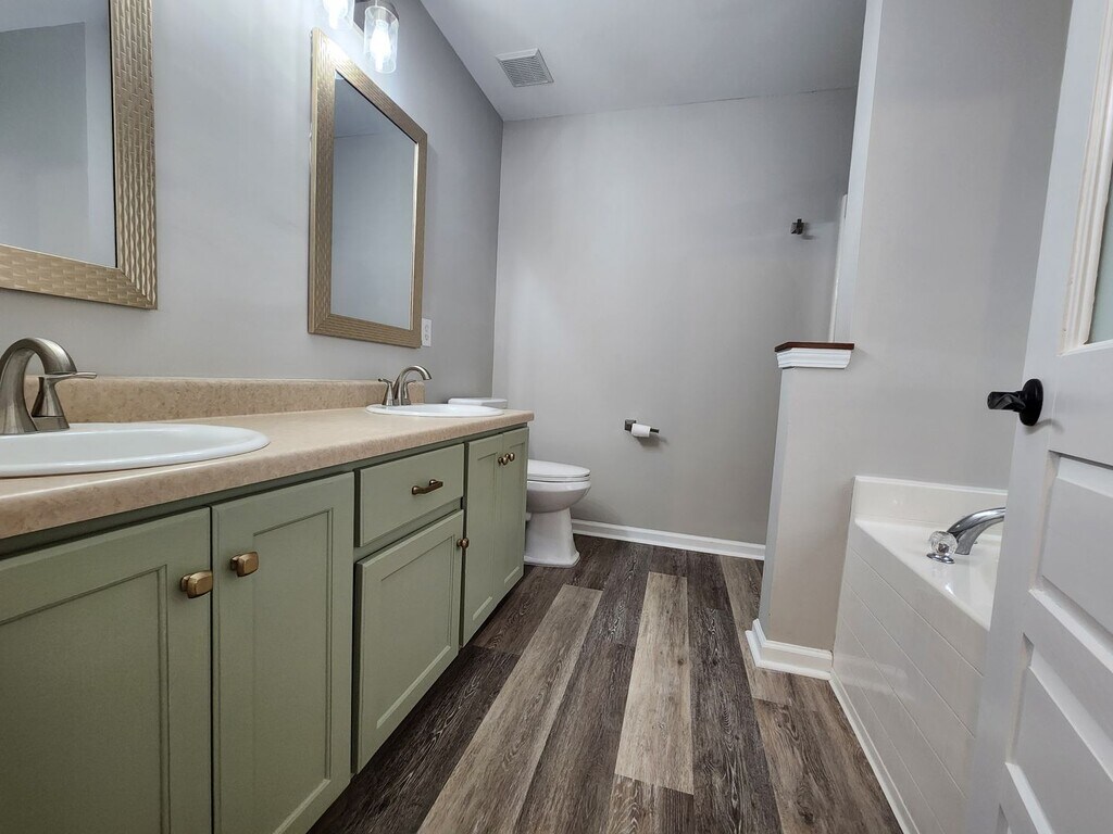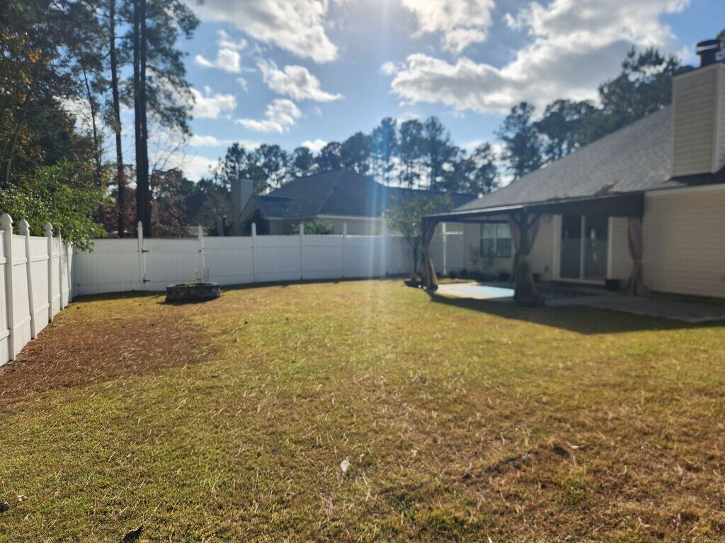 Welcome to the beautifully updated 3-bedroom, 2-bath home in The Arbors of Pooler! This home boasts a bright and airy atmosphere, enhanced by soaring ceilings and luxury vinyl plank flooring. The kitchen is a chef's dream with its sleek granite countertops and modern stainless appliances. The primary suite is equally impressive, featuring a double vanity and a luxurious soaking tub for ultimate relaxation. Step outside to a private fenced backyard, perfect for outdoor activities or simply enjoying the shade of your covered rear porch. This home combines modern elegance with functionality, making it a perfect place to create lasting memories. Come and experience the comfort and sophistication this home has to offer!