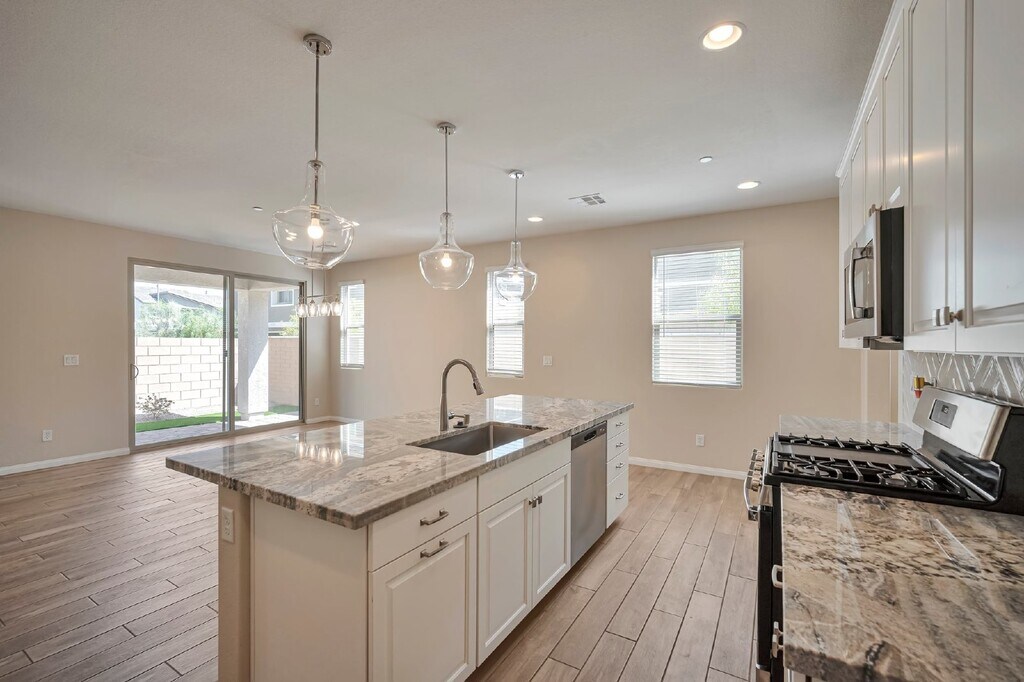 Enjoy the vibrant charm of 780 Aurora Vale Place, a stunning townhouse rental nestled in the heart of Henderson, NV. This spacious home built by Richmond American boasts three beautifully designed bedrooms, two full baths, and an additional half bath. This home has high ceilings with upgraded lighting, upgraded tile backsplash, upgraded flooring, a covered patio, water softener, tankless water heater, washer and dryer upstairs, 42 inch kitchen cabinets, quartz countertops in the kitchen and bathrooms, expanded pantry and a tankless water heater. The open floor plan seamlessly connects the living, dining, and kitchen areas, creating an ideal setting for both relaxation and entertaining. Large windows throughout the home invite natural light to pour in, brightening every room. The master bedroom is a true retreat with its own private full bath, providing a peaceful sanctuary at the end of the day. Plus enjoy a loft area for extra space to relax. Located in the desirable community of Cadence in Henderson, you'll find yourself just moments away from local parks, shopping centers, and dining options.