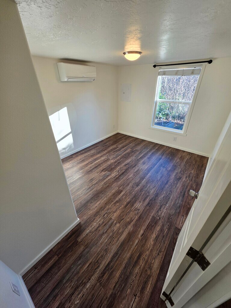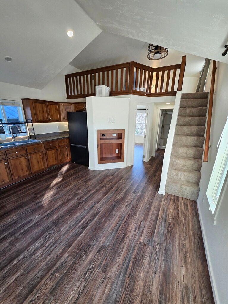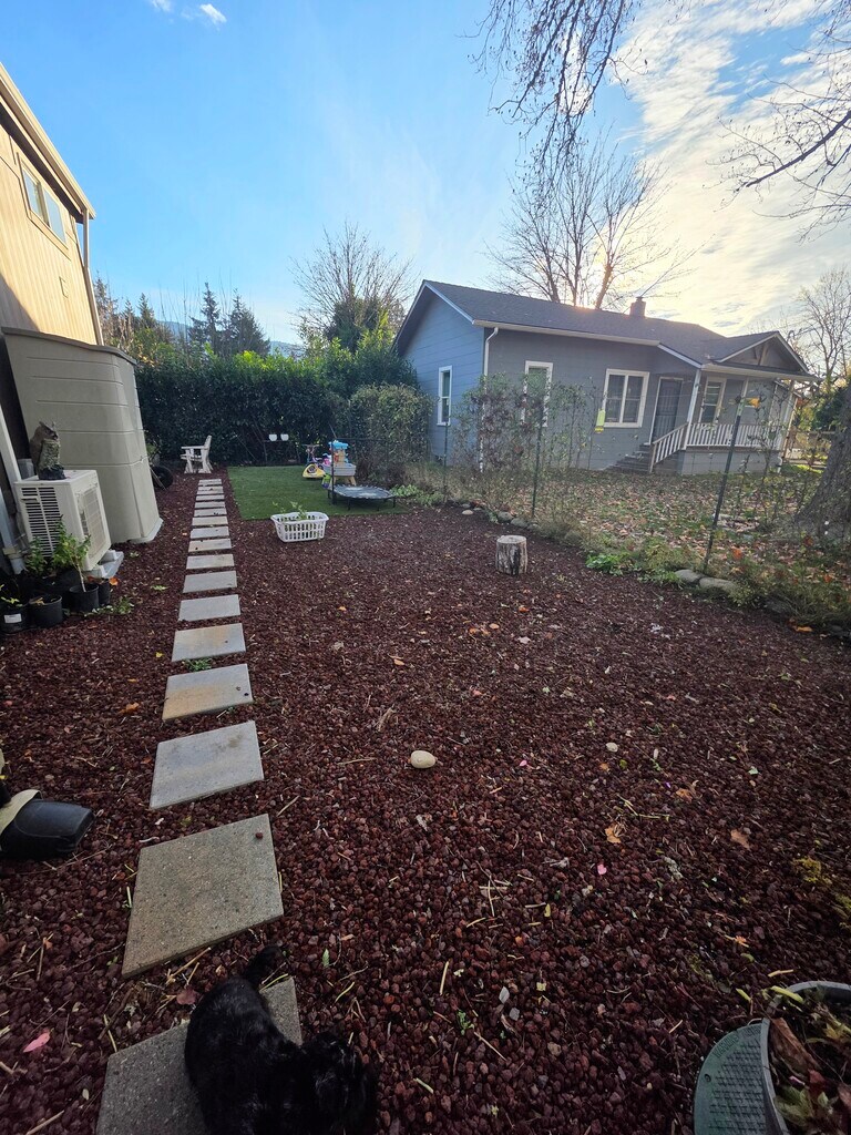 This thoughtfully designed home blends cozy charm with modern convenience, offering flexible living space, quality finishes, and an inviting outdoor setting. The main level features an open living area with warm wood cabinetry, durable flooring, and great natural light. The kitchen comes fully equipped with refrigerator & range- and a washer & dryer are included for your convenience. In addition to the main living area, the downstairs includes a separate bonus room that works well as a home office, dining room, or hobby space. A private bedroom and full bathroom are also located on the main level. Upstairs, you'll find a finished loft space that can be used as a bedroom, office, or creative retreat. The loft has a low ceiling height and is not included in the official square footage, but it is finished and temperature controlled, making it a flexible and functional bonus area. Enjoy year-round comfort with dual-zone mini-split heating & cooling. Outside, the fully fenced, low-maintenance yard is a standout feature, offering artificial turf, raised garden beds with drip system, an herb garden, and a berry patch perfect for relaxing or gardening without the upkeep. Covered parking is available under the carport. Close to the highway for an easy commute. Features include: 1 bedroom + loft bedroom+ bonus room 1 full bathroom Dual-zone mini-split heating & cooling Washer & dryer included Refrigerator included Covered carport parking Fenced yard with artificial turf, raised garden beds w/ drip system, herbs & berries Lease terms: 1-year lease Up to 2 small dogs (under 30 lbs) considered (additional deposit) No smoking/vaping This home offers a unique blend of comfort, flexibility, and outdoor charm in a manageable, well-designed space. A short pre-screening questionnaire is required before scheduling a tour. Call, text, email or request an appointment on Zillow to schedule a tour. Available now Security deposit: $1,500 Pet deposit: $250 Renters insurance required. Tenant pays utilities & handles routine upkeep (cleaning mini-split filters & landscaping/leaf blowing or raking). Owner handles maintenance, repairs, and gutter cleaning. Applicants must pass credit, background, and rental history screening. $40 application fee via Transunion