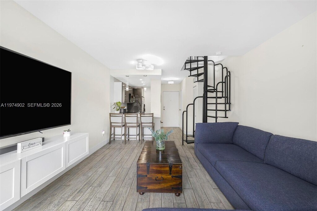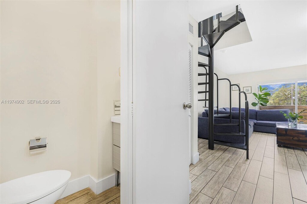 Exquisite and cozy one bedroom, 1 1/2 bathroom condo. Fully remodeled featuring open kitchen with stainless steel appliances & elegant quartz countertop. Also offers porcelain tile flooring, freshly painted walls and spacious living. As you enter, you will be greeted by a spiral staircase that will lead you to the 2nd floor bedroom. Room offers lots of natural lighting, walk-in closet and washer/dryer. Also has private balcony on first floor, great for intimate gatherings. Unit includes one assigned parking spot, street parking and visitor parking. There is also a pool and in close proximity to highway and shopping centers. Minutes away from Mimo District, Shorecrest, Wynwood, Midtown, Miami Shores & North Bay Village. Water included. MLS # A11974902