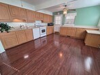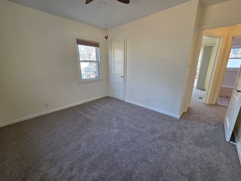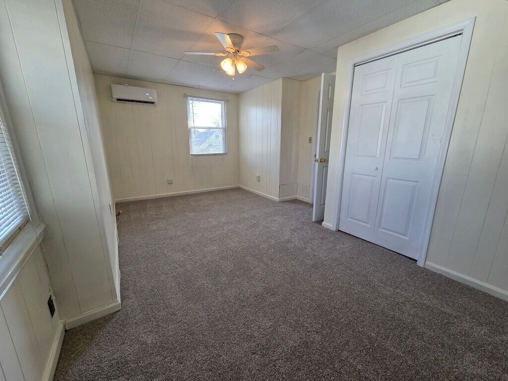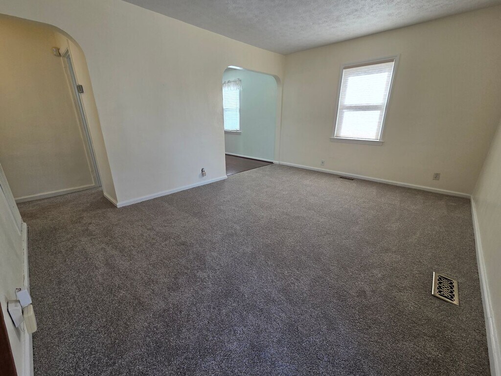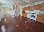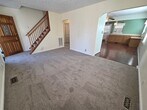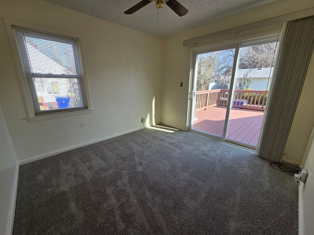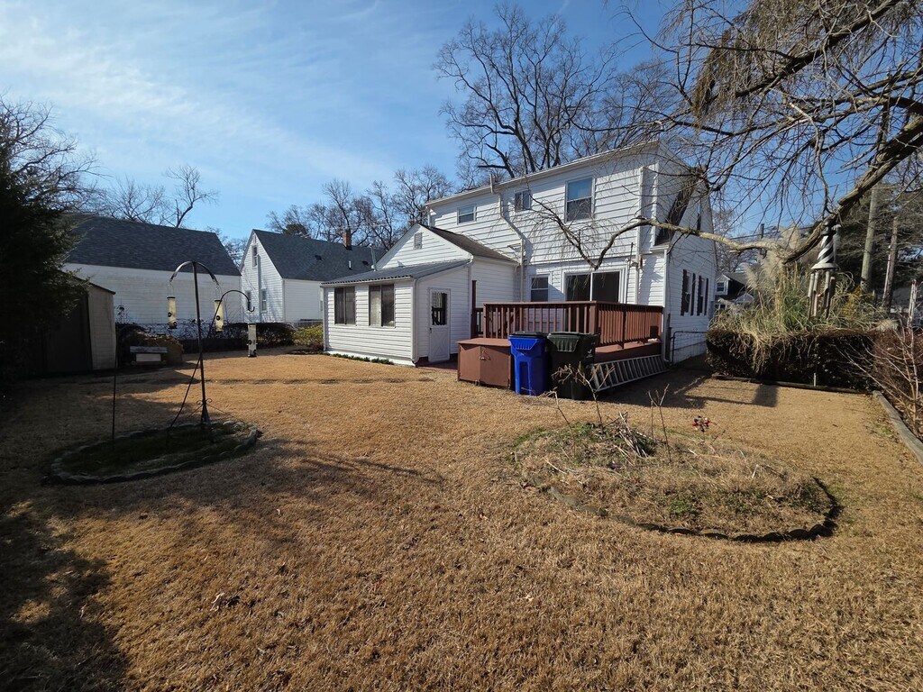 Spacious 4 bedroom 2 full bath cape cod with new carpet and fresh paint. Cozy family room opens to Large kitchen with room for island and dining table. 2 bedrooms downstairs; one with direct access to deck and yard. 2 large bedrooms upstairs. spacious laundry room. Semi fenced yard. Ground maintenance included. Off street parking. Sorry no pets. Available now. Apply online at