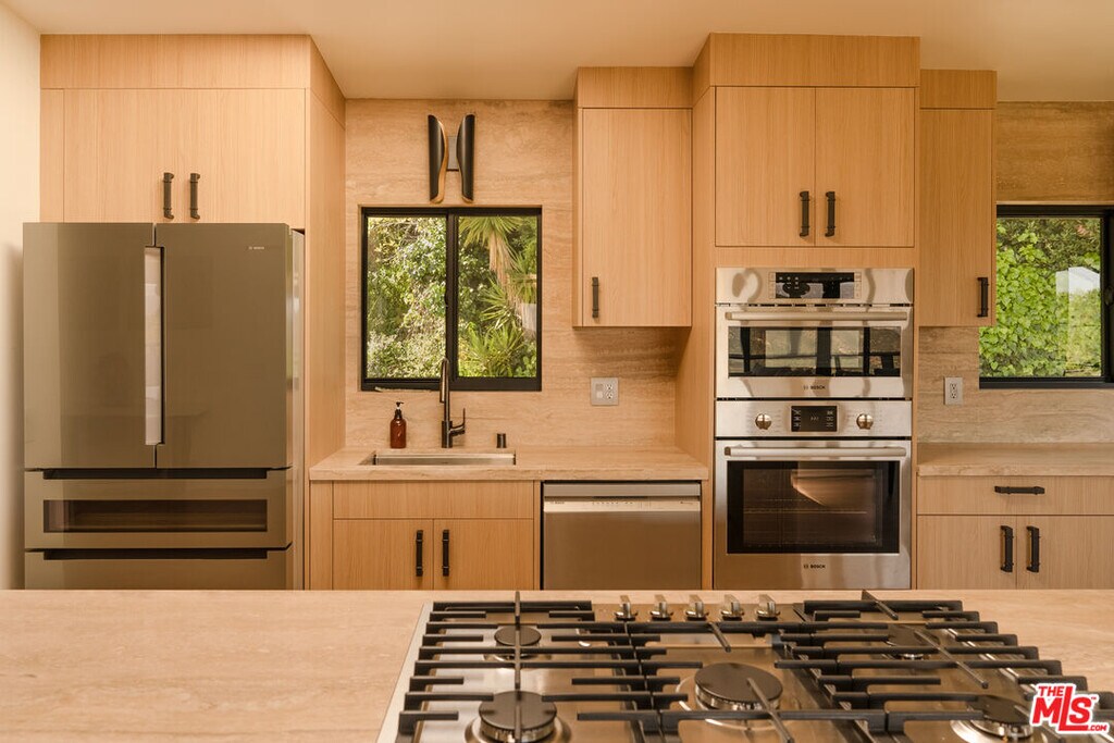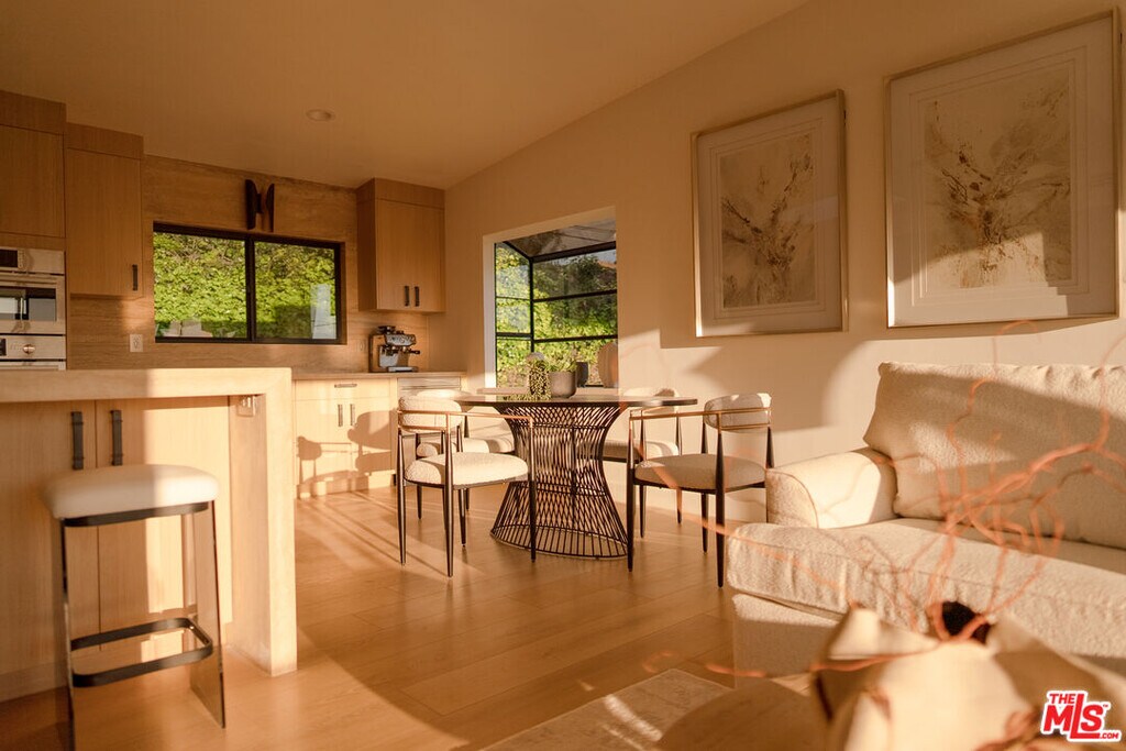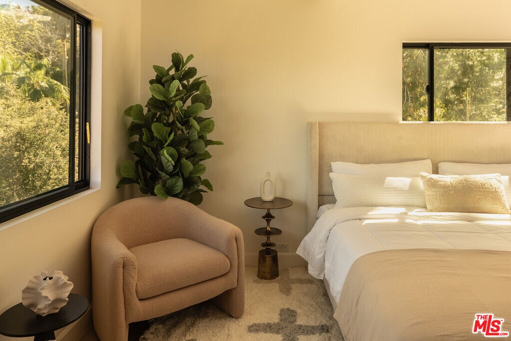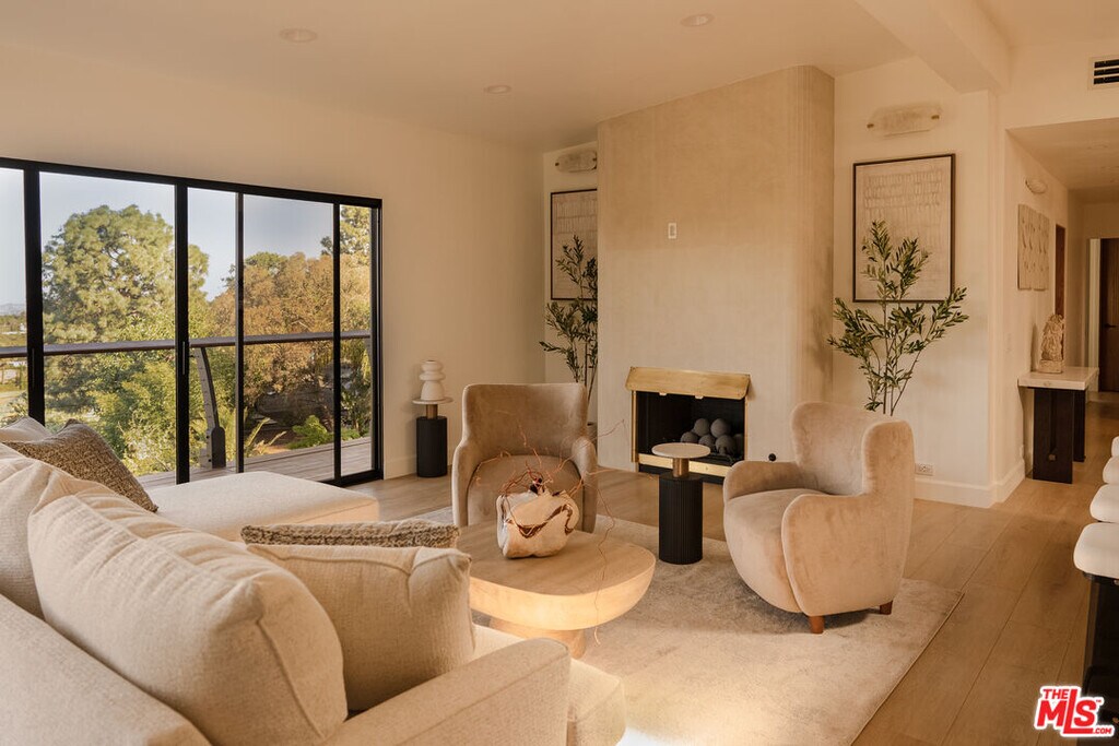 Prime location on the prestigious Celebrity Row in the Hollywood Hills. This newly remodeled 4-bedroom, 4-bathroom residence offers 3,300 sq ft of living space and is nestled on a private road, featuring a two-car garage and additional guest parking. The Primary Suite includes a walk-in closet, a separate wardrobe/dressing room, and a spacious Primary Bathroom with a soaking tub and a walk-in shower. The brand-new kitchen is fully equipped with modern appliances and includes a dedicated coffee station, perfect for everyday comfort and entertaining. A spacious den on the second floor offers versatile possibilities it can be designed as a showroom, meditation space, or exercise room. The den also includes an adjacent bonus room, ideal for a workshop, creative studio, or podcast room. The lower-level floor is fully private with its own separate entrance. It features a bedroom with a walk-in closet, a living room, kitchenette, steam spa shower, and outdoor patio perfect as a private guest suite, bachelor pad, or artist studio. The home enjoys stunning views of the Griffith Observatory, Universal Studios, and the iconic Chemosphere" by John Lautner, a historic Los Angeles landmark, visible directly from the property. Scenic Mulholland Drive is just steps away, offering a picturesque route that quickly connects you to the heart of Los Angeles or the Valley." MLS# 26664579