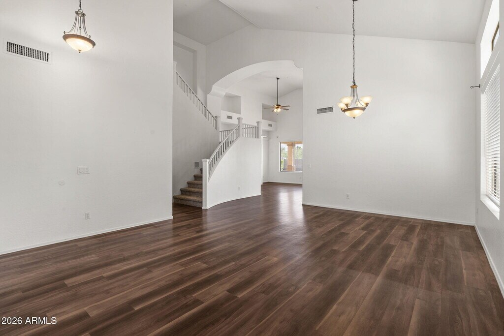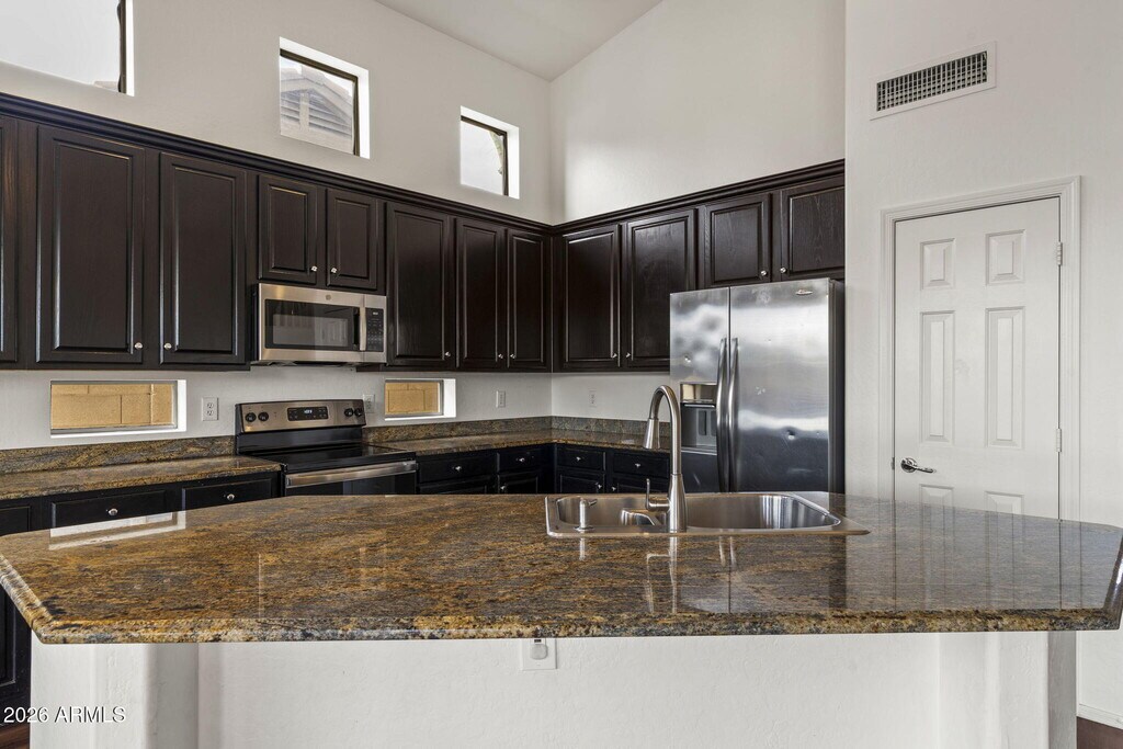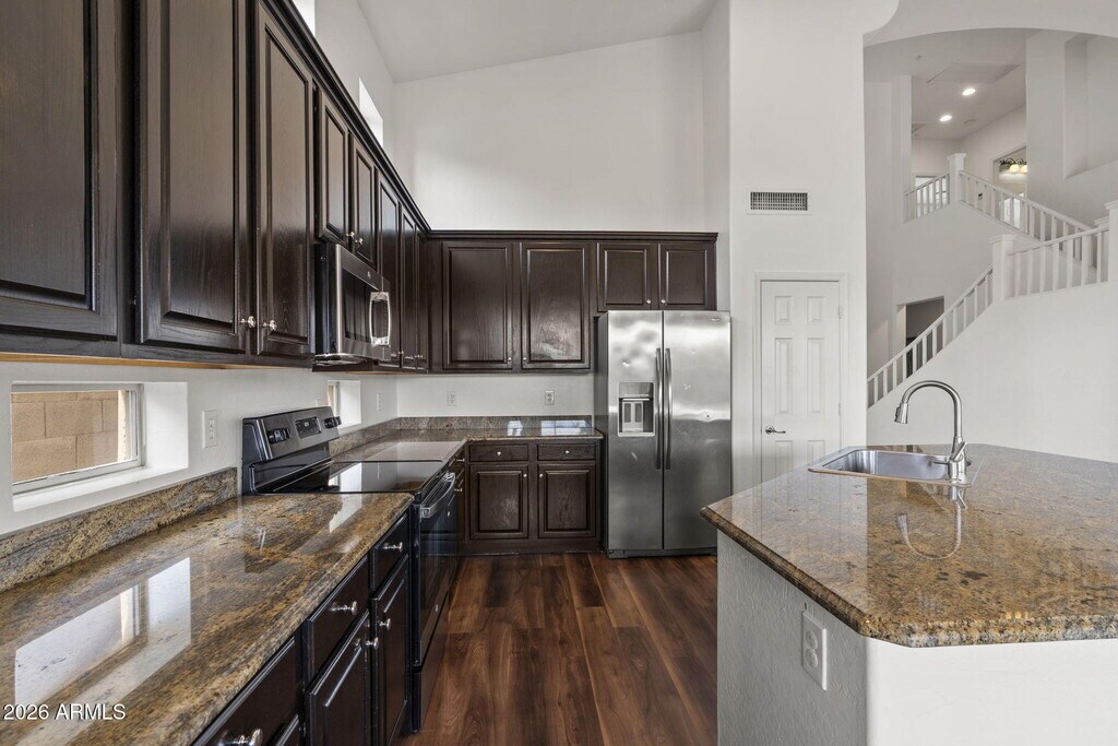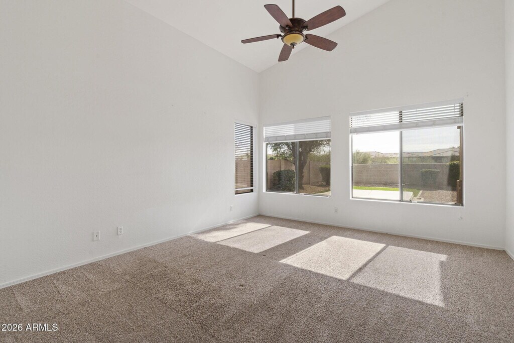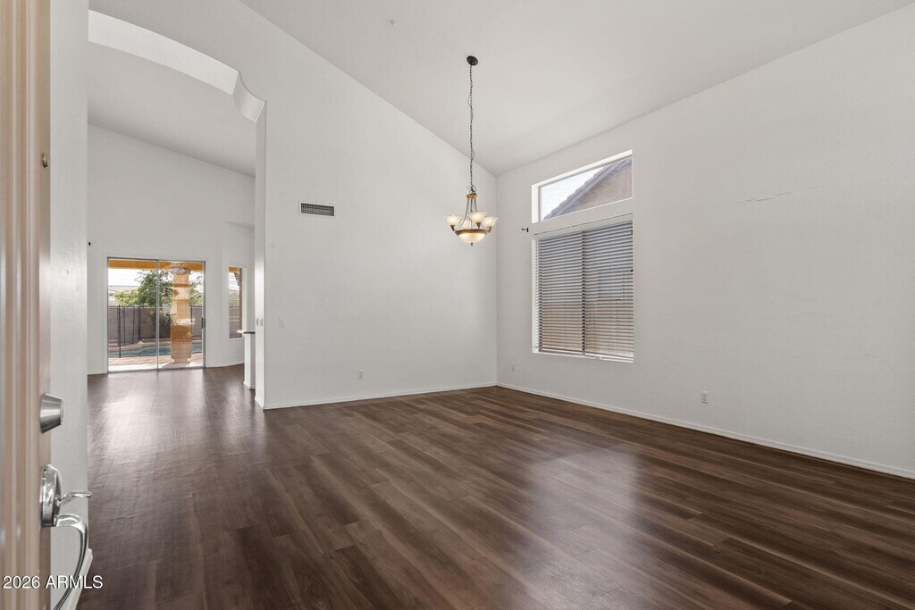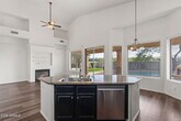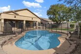 Welcome to 7803 E Nestling Way in the sought-after Grayhawk community. This spacious home offers both formal living and dining rooms,ideal for entertaining. Newer vinyl plank flooring highlights all the right areas. The main level features a generous primary suite with soaking tub,separate shower,dual vanities,and a walk-in closet,along with a secondary bedroom. Upstairs you'll find three additional bedrooms,providing ample space for family or guests. The family room is warm and inviting with a gas fireplace and opens to the kitchen,which boasts abundant cabinetry,a center island,and stainless steel appliances. Step outside to enjoy the fenced play pool with a built-in spaperfect for Arizona living. Tenant to maintain landscaping and pool.