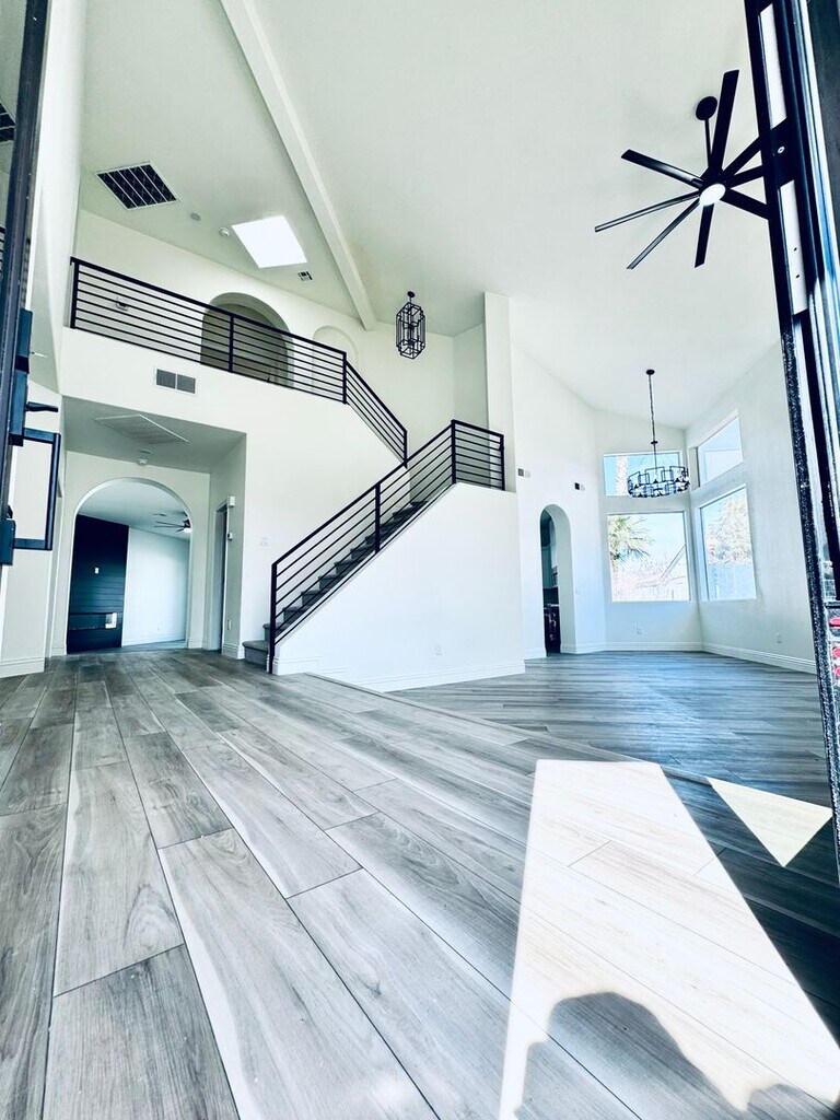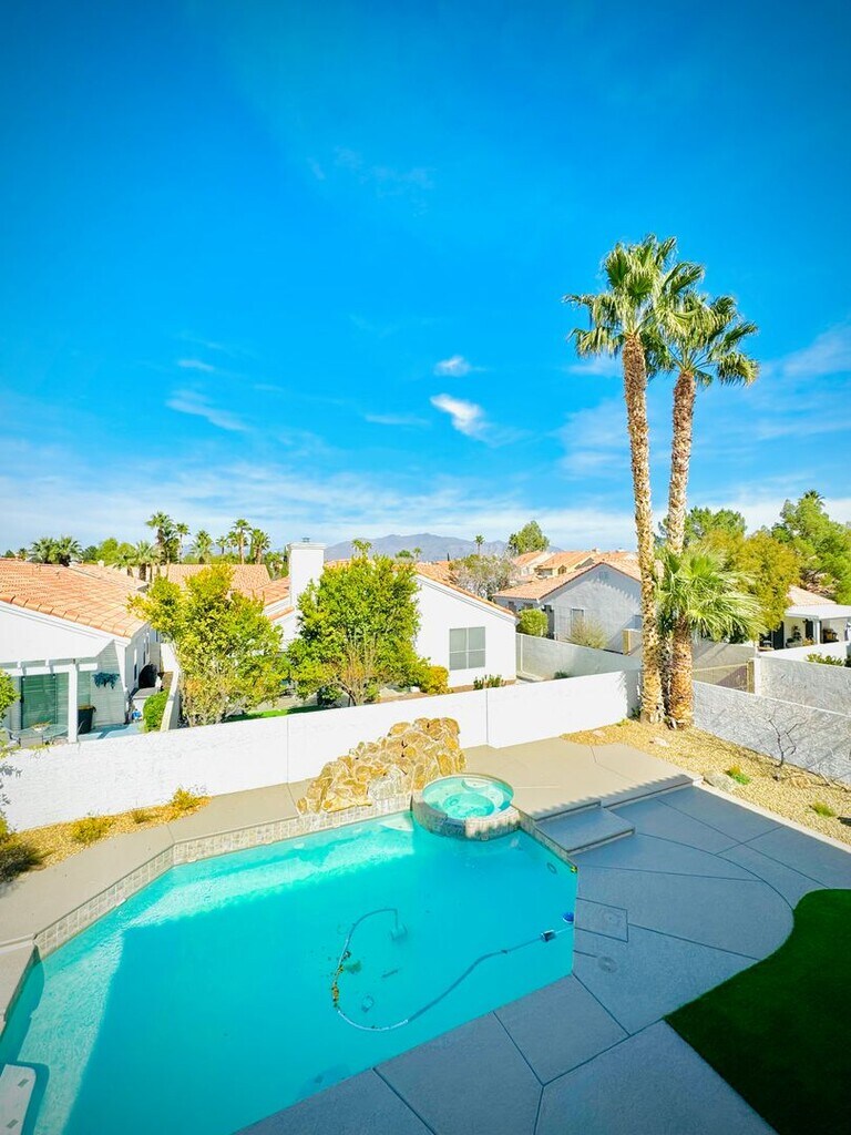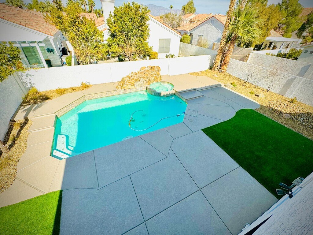 ABSOLUTELY GORGEOUS UPGRADED HOME LOCATED in a Guard-Gated POOL home at "Painted Desert Golf Community Las Vegas!" Enjoy the 18-hole championship golf course, clubhouse, and tennis and racquetball courts. This spacious 2-story Pool home sits near the end of a cul-de-sac and is a stone's throw away from the golf course. With 4 bedrooms, 3.5 baths, it also features large primary suite w separate shower, jetted tub, walk-in closet, and three-way fireplace. This gem has a downstairs guest suite w/ its own full bathroom. Enjoy the 3 fireplaces, high vaulted ceilings, abundant natural light, large windows, a skylight, and 9 ft ceilings upstairs. The kitchen boasts stainless steel appliances, breakfast counter/Island, a farm sink, abundant cabinets, and a large walk-in pantry. A spacious backyard awaits, complete with a pool, spa, and room for more. 3-car garage w/ Epoxy Floor! Large lot, guard-gated security, prime location near Hwy US 95 & Ann Rd. w/ abundant shopping & dining options!!