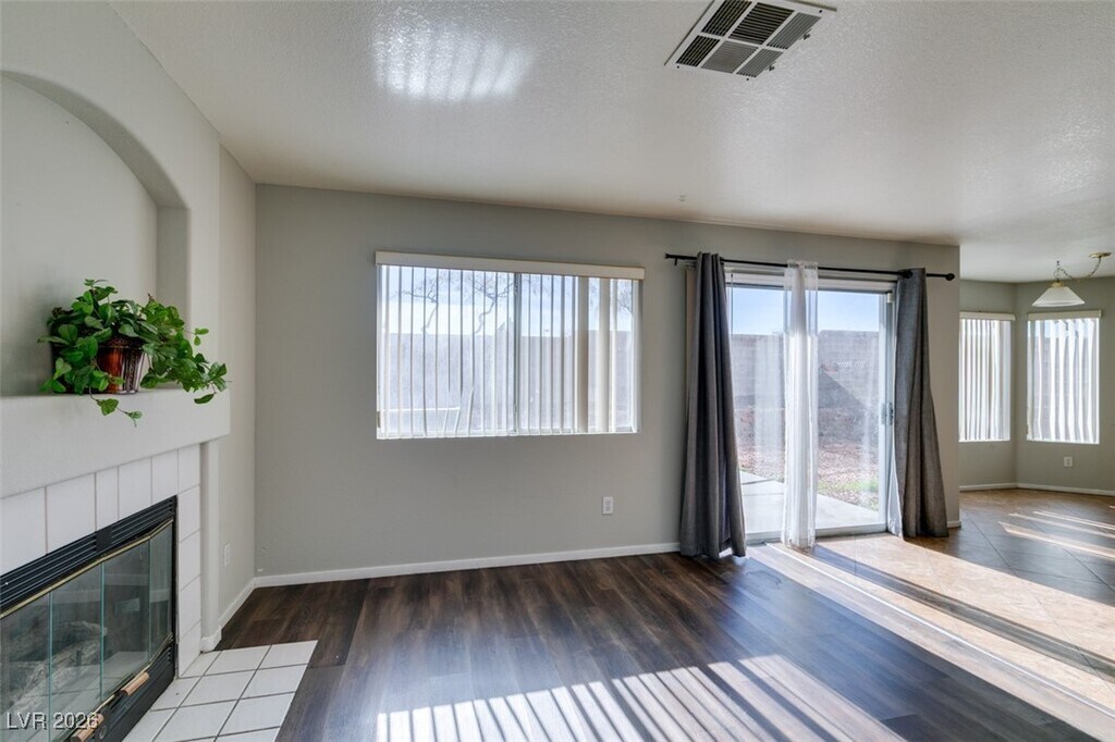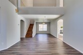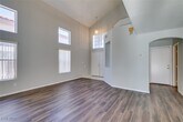 Located in desirable Summerlin, this charming 3-bedroom, 2.5-bath home offers a welcoming and functional layout. Upon entry, you’re greeted by a versatile space ideal for a dining area that seamlessly flows into the living room, complete with a cozy fireplace and open-concept connection to the kitchen. The kitchen features a center island that doubles as a breakfast bar, perfect for casual dining and entertaining. Upstairs, spacious bedrooms are filled with natural light, creating a bright and comfortable retreat. The primary suite includes a private bath with a separate walk-in shower and soaking tub, along with a generous walk-in closet. Step outside to a large, desert-landscaped backyard offering plenty of space and potential for outdoor enjoyment.