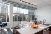 Open living room and kitchen with stainless steel appliances High ceilings with exposed air ducts for a modern industrial-luxury design 1 spacious bedroom with a walk-in closet and a custom built-in shelving system In-unit washer and dryer Private balcony Secured building with fob entry required for both building access and elevator access to the unit’s floor Total area: 1,250 SF