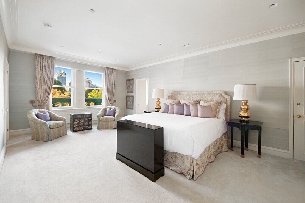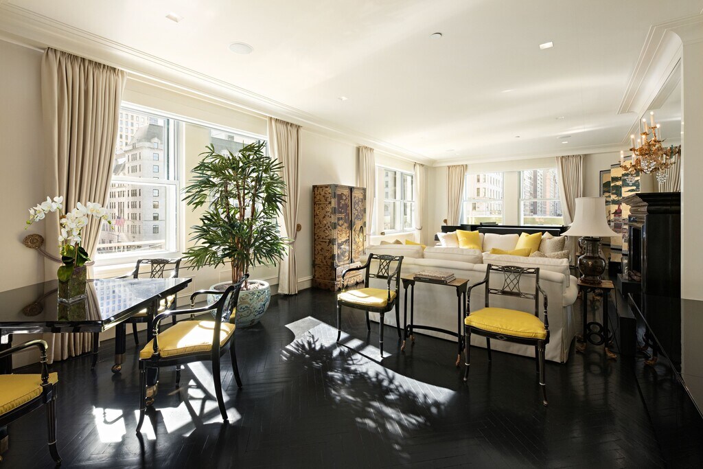 This glamorous 8-room residence is ideally situated at the prestigious Sherry Netherland Hotel. Wrapping the southwest corner, this sun-flooded apartment offers spectacular views over Central Park and the Grand Army Plaza, showcasing a dramatic backdrop unique to New York City living. The triple mint renovation reflects a sophisticated aesthetic that is both elegant and refined. The striking and impeccable renovation incorporates state-of-the-art technology with traditional architectural elements. An impressive Gallery with southern exposures opens to a lovely corner Living Room with breathtaking views of Central Park and a sumptuous Library. Beyond there is another Library/Dining Area and a fully equipped Kitchen. A Powder Room and coat closet are conveniently adjacent. The very private and spacious Primary Bedroom Suite is flanked by two original Art Deco marble bathrooms each with a sizable windowed Dressing Room boasting Park views and tremendous closet space. Two additional bedrooms with marble baths and ample closets are situated in a separate wing. These rooms have open and sunny southern exposures. Two decorative fireplaces, beautiful hardwood floors and sophisticated lighting and music systems further distinguish this quintessential New York view apartment. This most delightful residence is the ultimate abode for grand living and entertaining. The Sherry Netherland Hotel is located at the corner of Fifth Avenue and 59th Street in the heart of Midtown. This central and sought after location is easily accessible to Central Park as well as Manhattan’s best restaurants, shops and museums. Services and amenities offered by this iconic white-glove prewar cooperative hotel include full concierge services, 24 hour doormen and elevator attendants, daily housekeeping and evening turndown services, valet parking, room service provided by Harry Cipriani, a fitness center, barber shop and beauty salon. One month ($40,000) security deposit, refundable & mandatory $1000 elevator use per day for move-in/move-out, non-refundable & optional Rental Terms: Monthly: $40,000