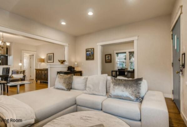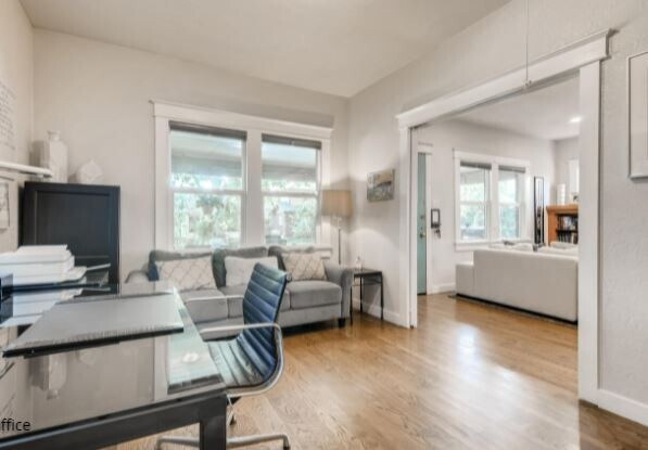 Located on a sought after block of Congress Park perched high above the street, this completely remodeled bungalow is a must see! Enjoy a tastefully updated kitchen with country charm and open concept living dining room area with fireplace lots of light and a warm fireplace with original built-ins. This home enjoys contemporary updates with maintaining rustic charm throughout. Upstairs are 3 light filled bedrooms, the main open concept living dining room, kitchen and one bathroom. On the lower level you'll appreciate a second living room space with non-conforming bedroom and en-suite with semi-private exit to rear yard area. The backyard has been well-cared for with newer fencing, turf and detached one car garage. Don't miss this uniquely remodeled residence in a fantastic location! 4th bedroom is non-conforming $60 Application Fee $199 One Time Lease Writing Fee LIC 2025-BFN0023039