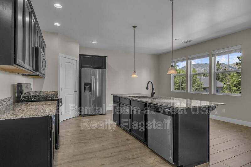 Gorgeous views, great location. Beautiful mountain home with mountain views. Stunning home with great room style living, 3 bedrooms and 3 full baths. Extra deep 2+ car garage (28' deep x 20' wide). Kitchen features granite counters, stainless appliances, custom cabinetry, recessed can lighting throughout. Hard surfaces throughout home with new carpet in bedrooms. Large deck off of living area with amazing mountain views. Reverse walkout style home with steps to main level. Only minutes to downtown or Flagstaff Medical center. Surrounded by Ponderosa trees. Pets are considered with owner approval. Managed with excellence by Tim Allen and West USA Realty Flagstaff.