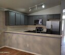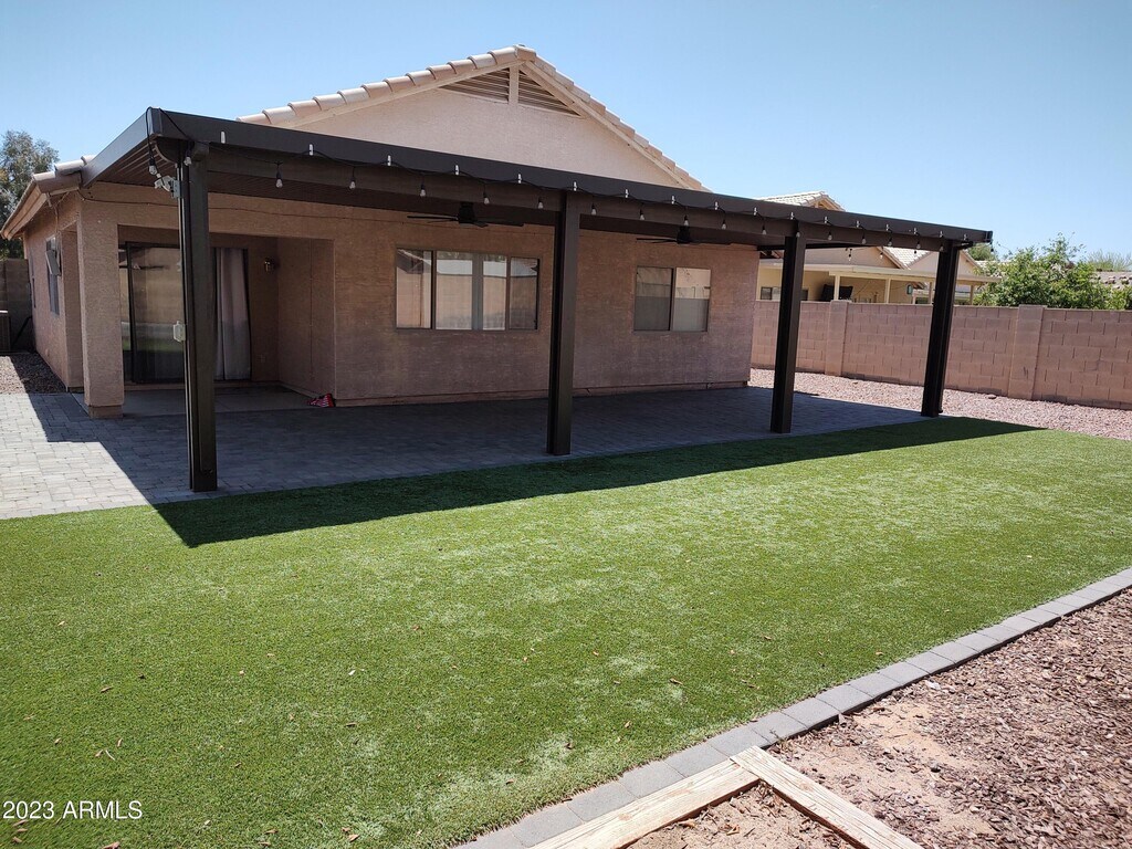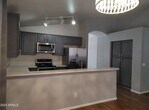 This 3 bedroom,2 bathroom split bedroom home is located close to shopping,parks,as well as the Cardinals Stadium and Westgate. Enter into the living room with ceiling fan. The kitchen is open to the family room with nice grey cabinets,plus stainless steel refrigerator,dishwasher,built-in microwave and range and large pantry,and breakfast bar,open to the eat-in kitchen and family room with wood accent wall.. The Master bedroom has vaulted ceilings for an airy feeling and the Master Bath has a walk-in closet and double sinks. The backyard has a large extended covered patio,a large artifical grass area and a fun horse shoe pit. A must see home on a dead end street.