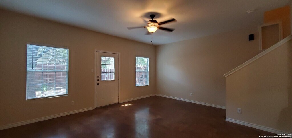 Welcome to the Spacious 2-story townhome, a newly renovated gem nestled in the heart of San Antonio, TX. This townhome boasts three generously sized bedrooms and 2.5 bathrooms, offering ample space for comfort and convenience. The open floorplan invites you into a world of modern living, enhanced by luxury vinyl plank flooring that adds a touch of elegance to the home. The kitchen is equipped with essential appliances including a dishwasher, refrigerator, and stove/oven, making meal preparation a breeze. The convenience continues with a stackable washer/dryer and a garage door opener for easy access. The plush carpet upstairs adds a cozy touch to the private spaces. The fenced backyard provides a private outdoor space, perfect for enjoying the Texas sun. Front yard maintenance is included, allowing you more time to enjoy the nearby shopping and entertainment options. With proximity to schools and a bus line, this townhome offers an ideal location for all your needs. Experience the perfect blend of comfort, convenience, and modern living at the Spacious 2-story townhome.