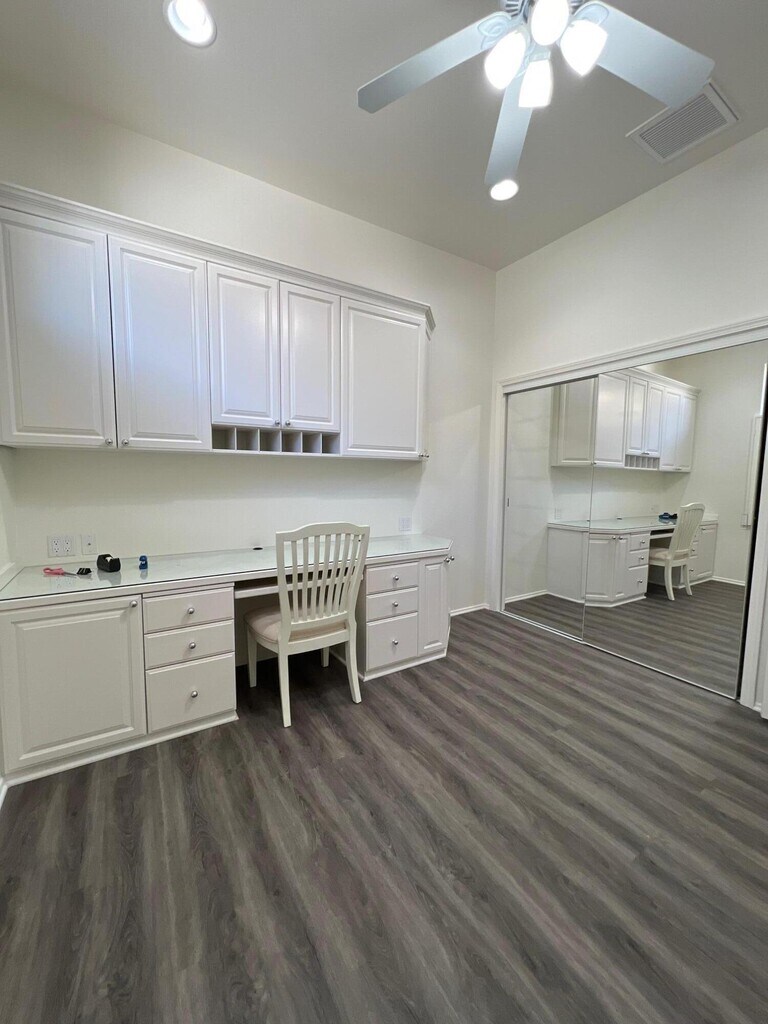 Currently rented January-March 2026. Available for all other months,please call. Spacious,clean and set up for fun! This home is equipped with your favorite vintage board games and a stand up game console to entertain you and your family. This Monterey floor plan home in Sun City Palm Desert is a true standout! Perfectly positioned within a highly desirable 55+ community. This exceptional property offers 3 bedrooms,3rd bedroom currently set up as office will include sofa-sleeper,2.5 baths,a cozy great room with a fireplace. Gorgeous luxury vinyl flooring flows throughout,paired with elegant crown molding and 10-foot ceilings. Phantom screen doors,dual heat/AC units,and custom baseboards. The kitchen shines with stunning white countertops and stainless steel appliances. The two-car garage is upgraded with epoxy floors and plenty of storage,plus a golf cart garage for extra convenience. The expansive backyard is an oasis,featuring an above-ground spa,BBQ and personal putting green. Whether you're hosting gatherings or enjoying peaceful solitude. Don't miss this incredible opportunityschedule your tour today and see for yourself why this Palm Desert home is perfect for your seasonal stay.