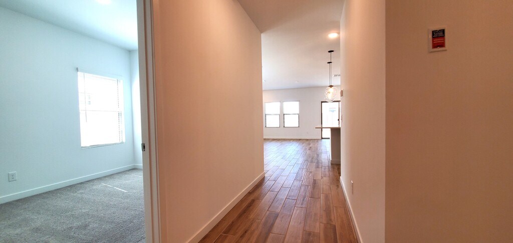 Beautiful one year old 4 bedroom home in a gated community, offering a spacious and family friendly layout close to great schools and just minutes from Westgate's shopping, dining, and entertainment. This home features a desirable split floor plan with stylish flooring in the main living areas and soft carpet in the bedrooms. The kitchen includes stainless steel appliances, granite countertops, and a large island perfect for family meals and gatherings. The primary suite offers an accent wall and an oversized walk in closet with plenty of storage. With its modern finishes, comfortable layout, and convenient location, this home is an ideal fit for families looking for space and everyday convenience. $50/month Resident Benefit Package added to the rent.