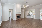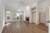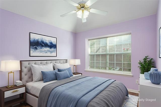 Landlord shows great pride of ownership in preparing this house for immediate and helpful move-in with Samsung REFRIGERATOR, WASHER and DRYER INCLUDED! Solar panels on the home's rooftop harvest clean, sustainable energy to power systems and new wood-look hard flooring has been installed in the bedroom and living areas for ease of cleaning and seamless flow throughout the home! Elevated ceiling heights, crown moldings, and large picture windows add abundant natural light and elegance to the formal spaces at the front of the home which may be used for dining or office uses. The family room is generously sized to accommodate several furniture pieces with tall ceilings, architectural niches, ceiling fan, and a wood burning fireplace making it a perfect place for hanging out with family and friends. The cheery kitchen is open to the family room, has clean white cabinetry, granite counters, island work space, induction stovetop, new stainless steel dishwasher and a stainless steel refrigerator. The split floor plan ensures a private primary suite with bay windows overlooking the patio and an ensuite bath. The bath has been thoughtfully updated with finishes and fixtures, enlarged frameless shower, crisp white garden tub, dual sinks, decorative lighting and a walk in closet with 3 hanging levels. The secondary bedrooms are located off a separate hall and share a full bath. The utility room is ready for use with a front loading washer and dryer set. The garage is at the rear of the home with storage space and a connection suitable for your electric car. Enjoy relaxing or entertaining on the covered patio with outdoor lighting, ceiling fan, privacy fence and plenty of room for your grill and outdoor seating. An added bonus is enjoying the mature garden with seasonal blooms! Awesome location: one block to Davis Library, Prairie View Park, Mathews Elementary and minutes drive to major highways, shopping and dining centers in Plano and Frisco!
