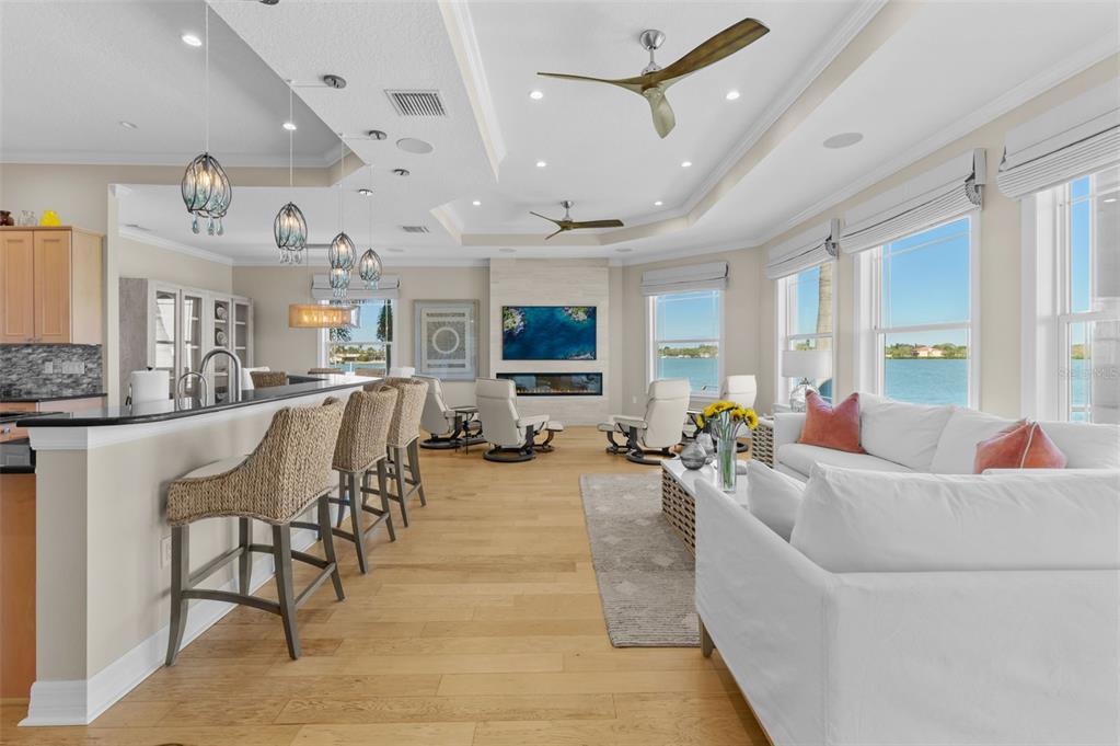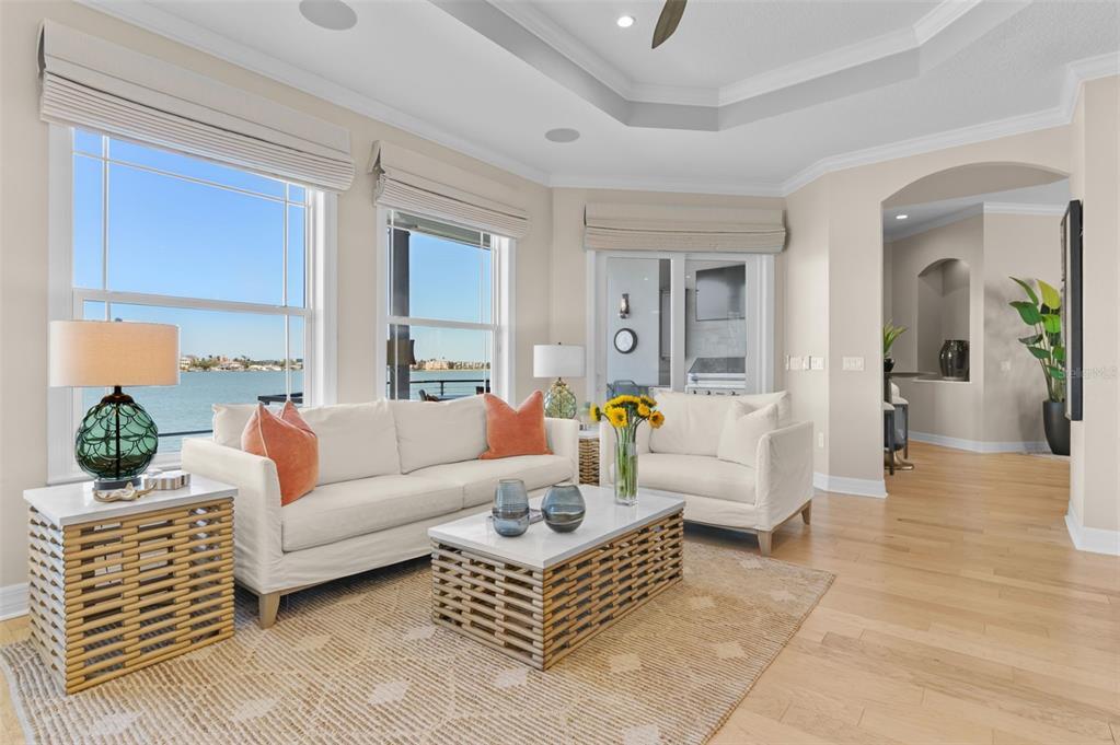 Welcome to 7815 9th Avenue South – a rare opportunity to lease a truly exceptional waterfront residence in Yacht Club Estates. This nearly 4,000 sq ft contemporary coastal home is tucked away at the end of a quiet cul-de-sac and offers sweeping views of Boca Ciega Bay. Thoughtfully designed for both everyday comfort and grand-scale entertaining,this fully appointed long-term rental features 4+ bedrooms,5.5 bathrooms,a home office,and expansive living spaces that flow seamlessly out to a private saltwater pool,jacuzzi,and 129 feet of waterfront. Inside,you'll find soaring ceilings,wide open water views,and high-end finishes throughout—from rich wood flooring and crown molding to a chef’s kitchen with 48” gas range,walk-in pantry,and oversized granite island. The main-level primary suite is a true retreat with a spa-style bathroom,steam shower,jacuzzi tub,and large walk-in closet. Upstairs,three spacious bedrooms—each with en-suite bathrooms—offer privacy for guests or family,including two with access to a private sunrise balcony overlooking the bay. Outdoors,enjoy Florida living at its finest with an outdoor grill,newer dock,and tranquil lion head fountains framing the heated pool. This is a unique opportunity to enjoy resort-style living in a premier waterfront community—available now as an furnished long-term rental. MLS# TB8401016