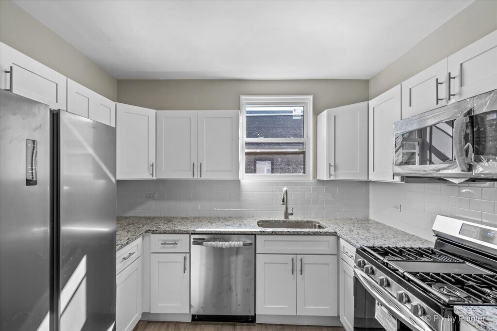 Fully remodeled 3 bed, 1 bath home. New kitchen complete with stainless steel appliances, granite counters and white cabinets. Living room features beautiful white brick fireplace with built ins on each side. Full basement. Fenced yard with 2 car detached garage. Beautiful home in up and coming neighborhood! Fully remodeled 3 bed, 1 bath home. New kitchen complete with stainless steel appliances, granite counters and white cabinets. New Roof, windows, doors, siding on both house and garage. Living room features beautiful white brick fireplace with built ins on each side. New fixtures, new hardware, new windows, new furnace, new AC and the list goes on! Fenced yard with 2 car detached garage.